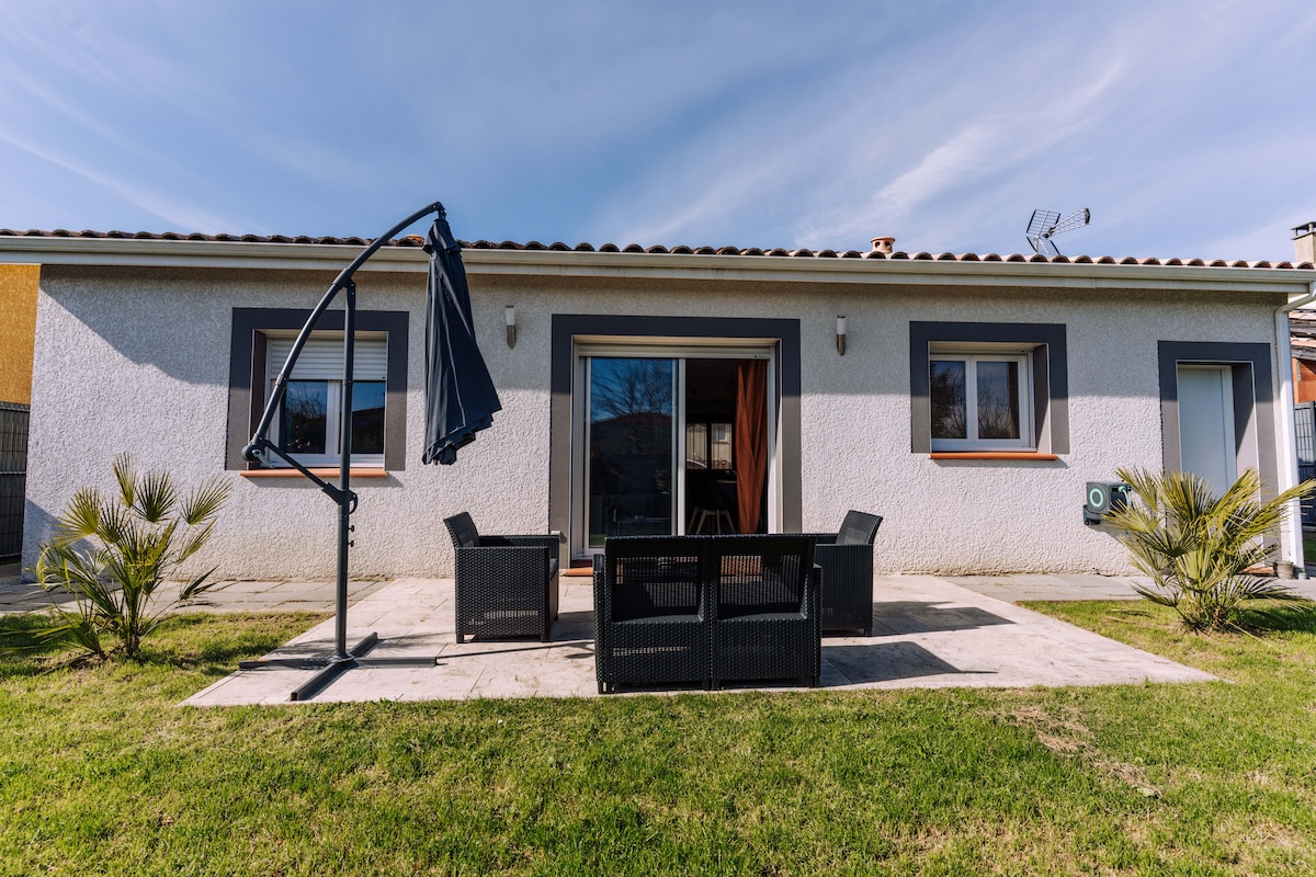 Villa con todas las comodidades en el centro de la ciudad con piscina cubierta climatizada de 5x2 m, bicicleta acuática y accesorios de aquagym. Numerosos equipamientos, incluyendo chimenea, aire acondicionado, TV de pantalla grande, terraza de madera, 2 salones exteriores, mesa de ping pong... Cerca del transporte (estación de tren, autobús y metro) y de las tiendas, a solo 10 minutos de la plaza del Capitolio. Ideal para relajarse y visitar la ciudad y los alrededores de Toulouse.