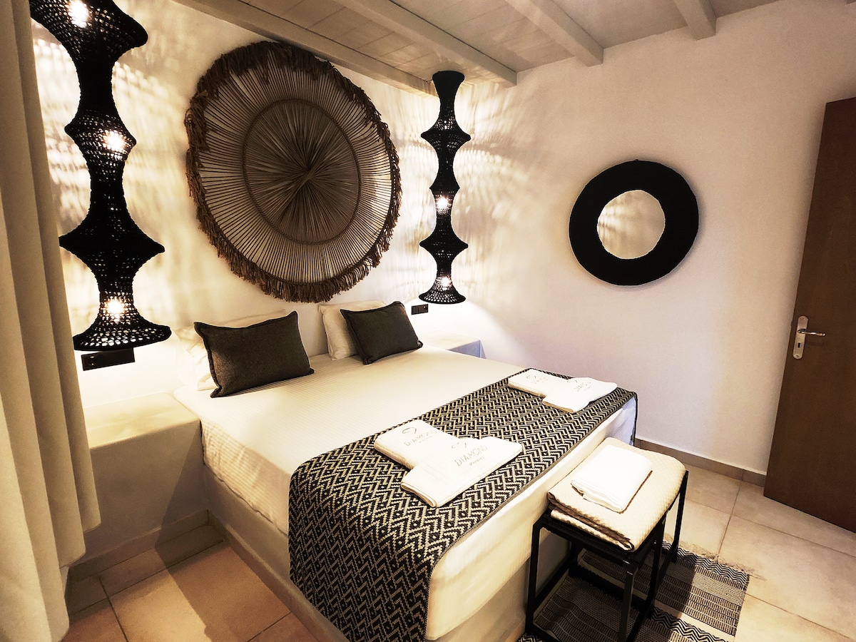 D'Angelo Hilltop Oasis is a newly renovated private property located at the edge of Mykonos Town. Positioned in a quiet neighbourhood, providing a beautiful view of the Aegean Sea and Mykonos Town. Nestled into a beautiful natural hillside surrounded by traditional gardens, all while maintaining the convenience of being in town. Perfectly located, a short 5-7 minute walk is all that stands between you and the historical centre and Fabrika square (downhill there, uphill on the way back).