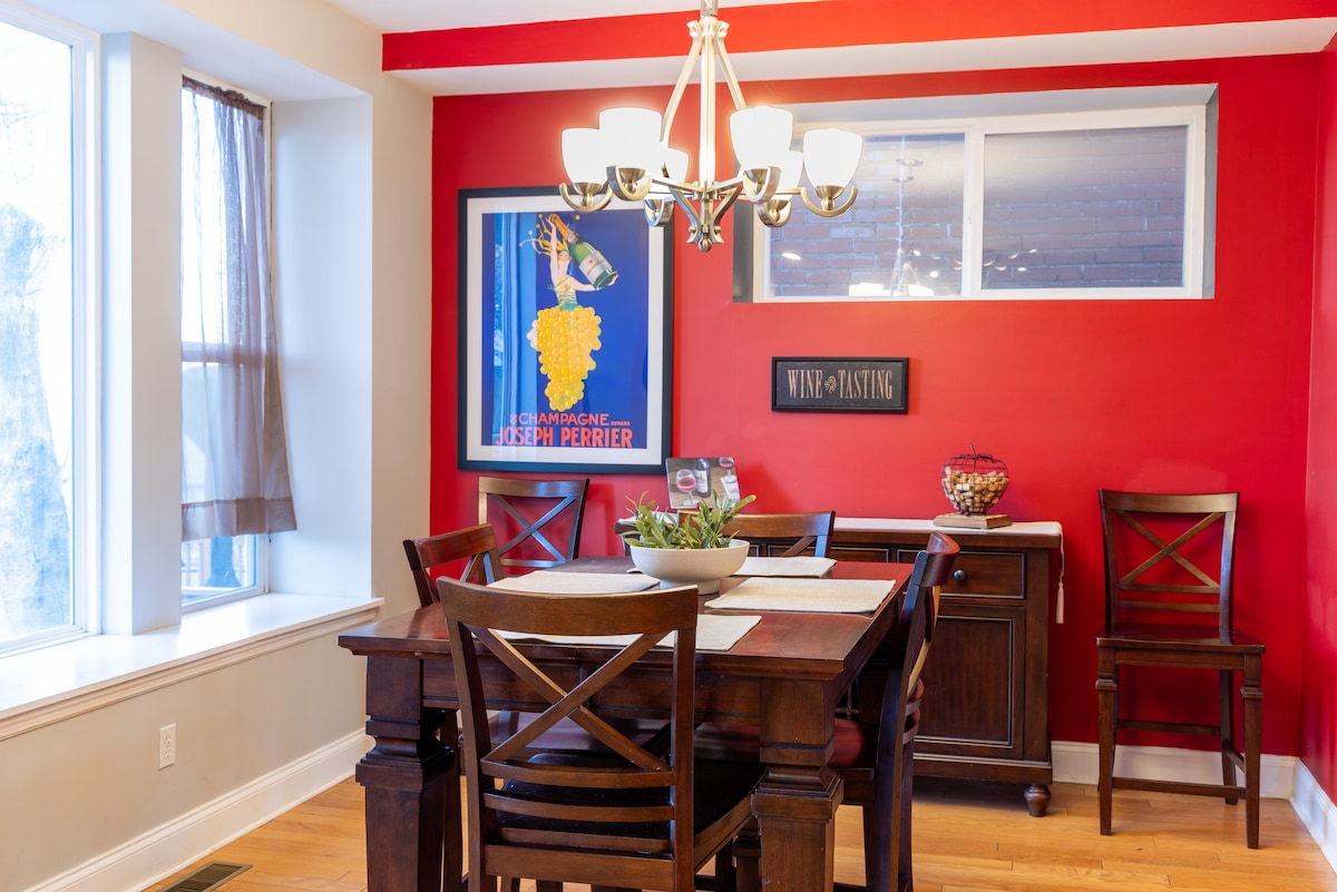 Siéntate en las sillas Eames blancas y en un banco incorporado en un acogedor rincón de comedor donde los detalles antiguos y modernos se mezclan. Tira de los taburetes hasta una isla en una cocina con vistas a un patio trasero vallado y cubierto de hierba. Los toques aptos para niños incluyen juguetes y libros para su uso. Verdaderamente en el corazón de todo, estamos a solo unos pasos del distrito de negocios Morganford con restaurantes locales, pubs, cafeterías/tiendas de té y tiendas de comestibles. Estamos al lado del espacio del jardín comunitario, del cual hay una pequeña biblioteca gratuita en la parte delantera. Estamos a varias cuadras de Tower Grove Park, la joya de 289 acres del vecindario que alberga innumerables eventos a lo largo del año. Además, estamos ubicados en el centro de todas las principales atracciones de St. Louis como se indica a continuación: -1,4 millas (6 min) del famoso Jardín Botánico de Missouri -2,5 millas a Historic Soulard y Anheuser-Busch Brewery - A 4,0 millas del zoológico de St. Louis y del Centro de Ciencias de St. Louis (¡ambos son gratuitos!) -5,0 millas de Jewel Box en Forest Park. -5.0 millas (10 minutos) del estadio Busch -5.5 millas del Centro de Convenciones America 's Center y The Gateway Arch -18 millas (25 min) desde el aeropuerto STL Para familias que viajan con niños, ofrecemos extras que puedes usar: Pack N Play con colchón + sábana, puertas para bebés, asiento elevador, silla alta, luces nocturnas, máquinas de sonido, máquina de luz arcoíris, portero para bebés, juguetes/libros. Los huéspedes tendrán acceso a toda la casa y al patio trasero vallado ¡Nos encanta compartir nuestra parte de la ciudad con los huéspedes! Te damos tu espacio. Vivimos cerca y estamos disponibles para ayudarte con las recomendaciones y estamos a solo una llamada de distancia en caso de que surja algún problema. Esta casa se encuentra en el bullicioso barrio de Tower Grove South, en el corazón del distrito financiero de Morganford. Restaurantes, cafeterías y comestibles están a solo unos pasos. ¡El parque de 289 acres cercano ofrece impresionantes vistas, parques infantiles y muchos eventos! Aunque el área metropolitana de St. Louis es generalmente más fácil de disfrutar en automóvil, alojarse aquí lo aleja de la parada de autobús en Morganford y Connecticut, que ofrece un fácil traslado al Metro Rail en Grand Center, que conecta con Amtrak y el aeropuerto de St. Louis Lambert. Los servicios de viajes compartidos (Uber, Lyft) y taxi también están disponibles. Hay estacionamiento en la calle frente a la casa, así como una plataforma de estacionamiento dedicada para 2 autos en la parte trasera (acceso al callejón) si trae o alquila un automóvil. *** IMPORTANTE, POR FAVOR LEA ** * Hay aproximadamente 6 escalones desde la acera hasta el piso principal. Tenga cuidado con el paso a medio camino entre la acera y los escalones principales. Para aquellos que tienen movilidad reducida, la suite principal se encuentra en la planta principal. Hay calefacción central y aire acondicionado de doble zona, con termostatos Nest en la planta baja (pasillo al maestro) y en la planta alta (justo fuera de la puerta del dormitorio a la izquierda en la parte superior de las escaleras).