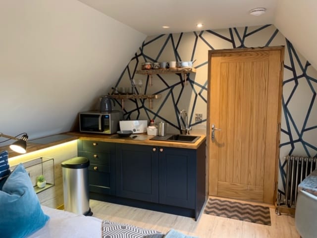 El Old Maple Lodge es un anexo hermoso y elegante de una casa con estructura de roble, ubicado en el encantador pueblo de Riccall, a 8 millas al sur de York. Con vistas al estanque original de la antigua casa solariega, The Old Maple Lodge ofrece a los huéspedes una experiencia de lujo, con cama tamaño king, baño privado y cocina. Perfecta para alojar a 2 personas, la suite está bellamente equipada con muebles opulentos y, por supuesto, con acceso a wifi y TV digital.