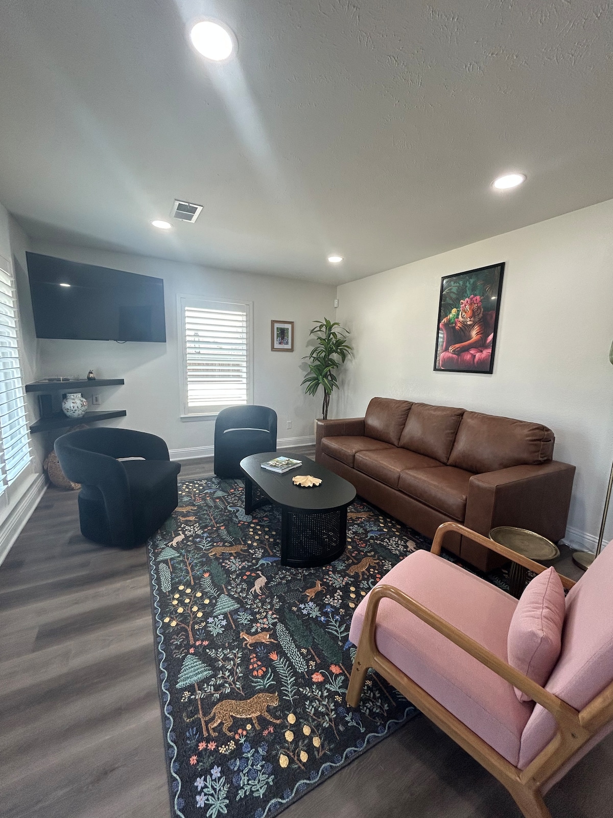 La Casa Caballero es una casa reformada y decorada con buen gusto cerca del centro de Frisco. Barrio tranquilo con 4 dormitorios, 2 baños, oficina y un concepto de cocina/sala de estar abierta. Luminosa, esta casa permite que la familia tenga espacio dentro y fuera con un enorme patio trasero con chimenea, zona de comedor e incluso un arenero. O un profesional de negocios puede tener espacio para trabajar con las comodidades del hogar. Estás a poca distancia a pie de todo tipo de restaurantes, cafeterías y tiendas divertidas en el centro de Frisco.