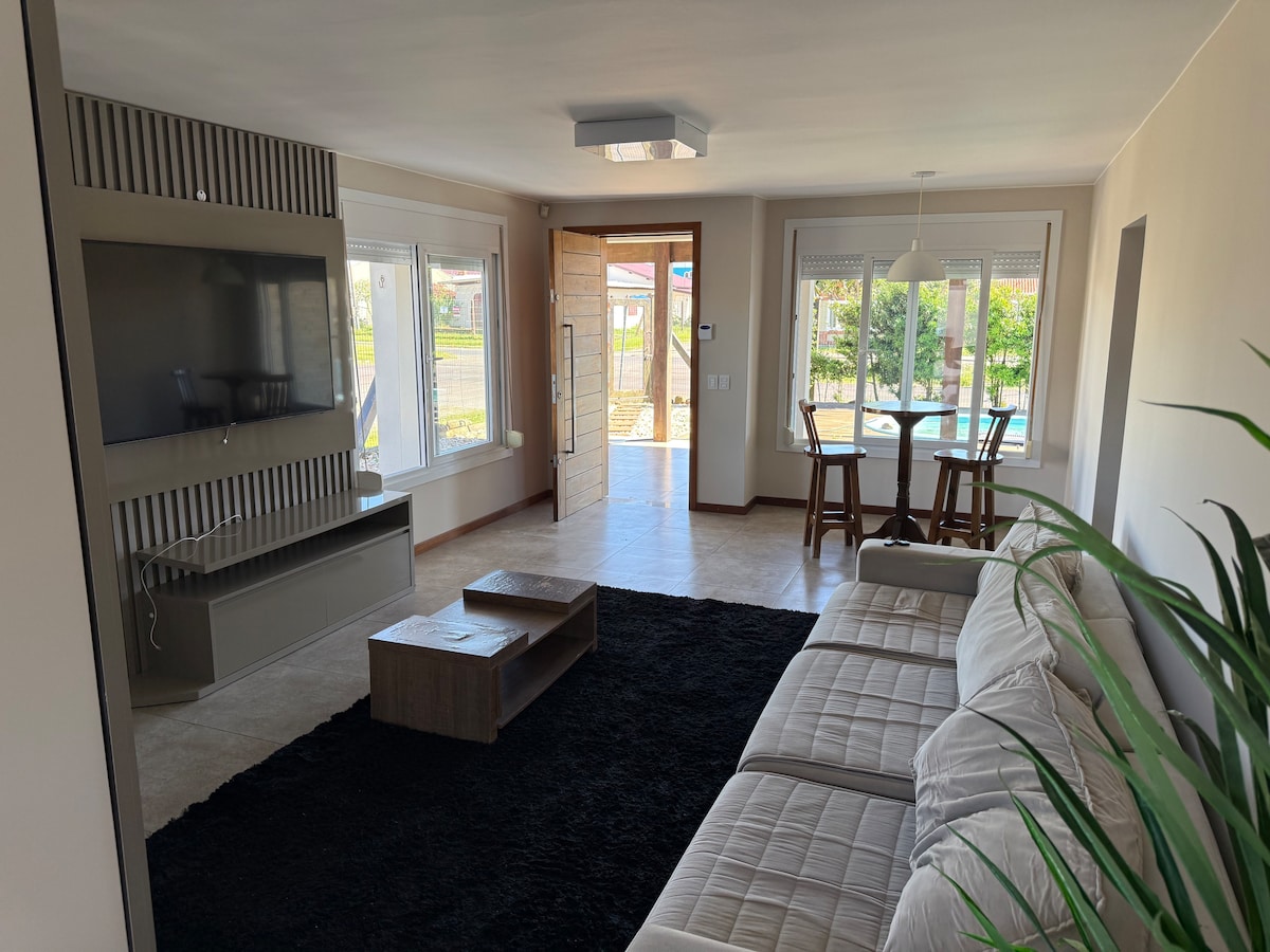 Bienvenido a nuestra casa en Tramandaí 🏖🌅 Estamos en el Condominio Terrazas Del Mar. Casa frente al mar y en el centro de Tramandaí. Hay 2 habitaciones dobles (suites), sala de estar, cocina, baño, lavandería. Barbacoa y patio privado en la parte trasera y delantera. 1 plaza de aparcamiento dentro del patio. Sofá cama doble en la sala. ¡Wi-fi de 320 MB! TV Smart TV con antena externa y se puede acceder a Youtube, Netflix, Amazon Prime Video, entre otros. Necesitas iniciar sesión con tu cuenta. ¡CASA NUEVA, LIMPIA Y ORGANIZADA!