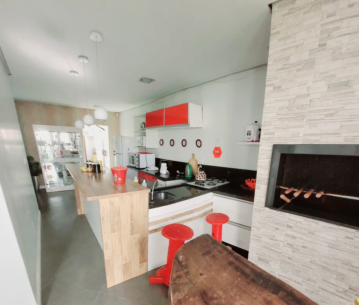 Casa grande, cómoda, súper bien calificada y acogedora. 4 dormitorios con camas dobles, barbacoa, chimenea, patio con posibilidad de 2 coches, terraza grande y encantadora, cocina equipada, muchos electrodomésticos para tu comodidad, 2 refrigeradores. Cerca de la playa y a 50 metros del río. Los huéspedes solo tendrán que traer toallas y sábanas. La casa ofrece sillas de playa. Disfruta de tus vacaciones con tus familiares y amigos.