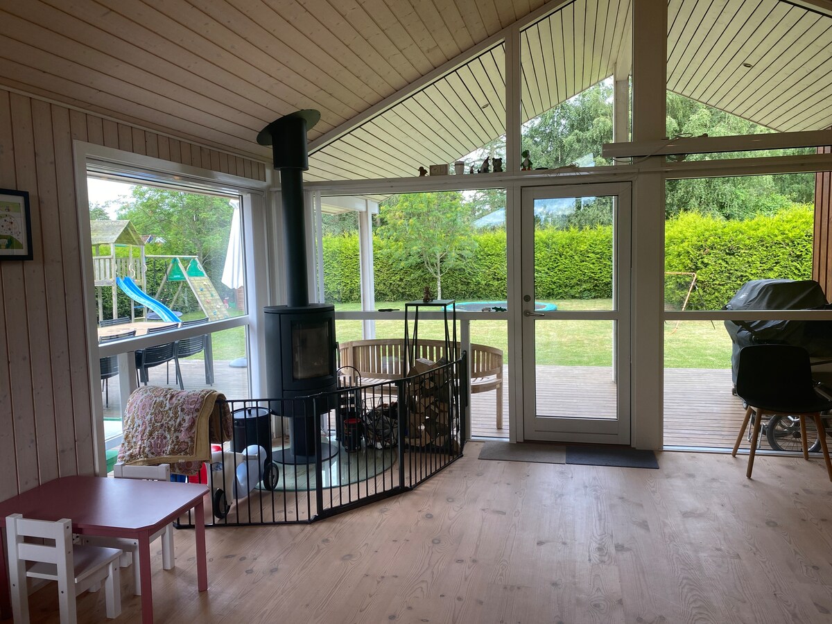 Casa de vacaciones en renta Hemos decidido alquilar nuestra encantadora casa de verano ubicada en Grasten, en la isla de Thurø, que tiene una conexión fija con Svendborg. A 200 metros de la casa de verano se encuentra el ferry turístico Helge, y con él puedes navegar hasta la ciudad de Svendborg. La casa tiene 74 m2 y consta de cocina-sala de estar, 1 baño, pasillo, dormitorio, habitación para niños y repos con sofá cama. Amplia terraza de madera orientada al sur con mesa de jardín/sillas y barbacoa. La casa está justo al lado de Svendborgsund. Sí, de hecho, está a solo 10 metros de tu propia playa y su propio embarcadero de baño, desde donde puedes darte un buen chapuzón, atrapar cangrejos, recoger rocas y golpear, construir castillos de arena, solo la imaginación establece límites. Después de varias actividades en la playa, se puede disfrutar de una ducha debajo de la ducha al aire libre de la casa, que tiene agua fría y caliente. La vista es absolutamente fenomenal con vistas a Langeland, Tåsinge (Valdemarslot). En el mar siempre hay vida de veleros y barcos, ya que nuestra casa se encuentra justo a la entrada de Svendborg. Además, se ven muchas aves, conejillos de indias y focas. En todas partes hay un lugar verde y tranquilo, sin ruido de los coches, solo silbato de pájaros para romper el silencio. Hay grandes bosques a un paso de distancia. Si te interesa la pesca, el pescado plano, la trucha, etc. se puede atrapar desde el embarcadero. Tenemos dos kayaks y dos kayaks para niños que son bienvenidos a pedir prestados. También hay chalecos salvavidas para niños y adultos. También tenemos una encantadora sauna finlandesa de madera, construida con aletas reales allí, entrenamos leña y horno de Finlandia. Disfruta de una experiencia profunda en el mar y luego experimenta la calidez de la encantadora sauna. Hay espacio para 1 familia y un máximo de 4 personas. Debes traer tu propia ropa de cama, toallas, paños de cocina, toallas de té, etc. No tenemos TV, pero hay muchos juegos de mesa. Hay muchos juegos de mesa. 😉 Wifi disponible. Instalaciones: Lavavajillas, lavadora, horno, placa caliente, hervidor eléctrico, nevera + congelador, cafetera nespresso, tostadora. La casa se calienta con calefacción eléctrica, además de la estufa de pellets de leña. El precio no incluye el consumo de electricidad. El medidor de electricidad se revisa a la llegada y a la salida y se paga a través del pago móvil al número 60619449 o se pone en efectivo. Debe limpiarse/vaciarse todo y luego se limpiará una empresa de limpieza.