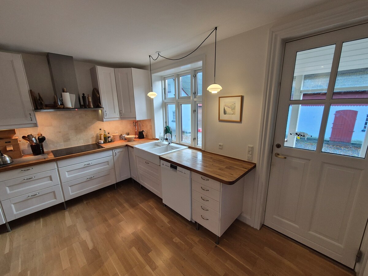 Nuestra acogedora casa de campo está ubicada en medio de la hermosa naturaleza de ! rø, justo en el pintoresco lago Vitsø, una reserva natural que sirve como refugio para numerosas especies de aves. La casa puede alojar hasta 6 personas. Con acceso privado a la ruta de senderismo que conduce alrededor del Vitsø y el mar, puedes disfrutar plenamente de la naturaleza virgen. La casa está bien equipada y ofrece una comodidad moderna al mismo tiempo que conserva el ambiente rústico y danés.
