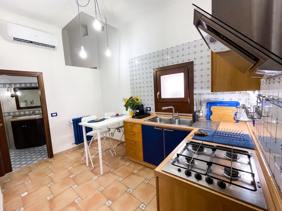 Encantador estudio con servicios y patio interno; recientemente renovado, equipado con todas las comodidades, lo que garantiza silencio y privacidad. Situado en uno de los Palazzi más prestigiosos del Centro Histórico de Trani, está a pocos pasos de la Catedral y de los principales atractivos de la ciudad. El departamento cuenta con: Cama doble + cama individual Wifi Cocina con placa de inducción portátil con 1 ubicación Microondas Refrigerador Calefacción Aire acondicionado