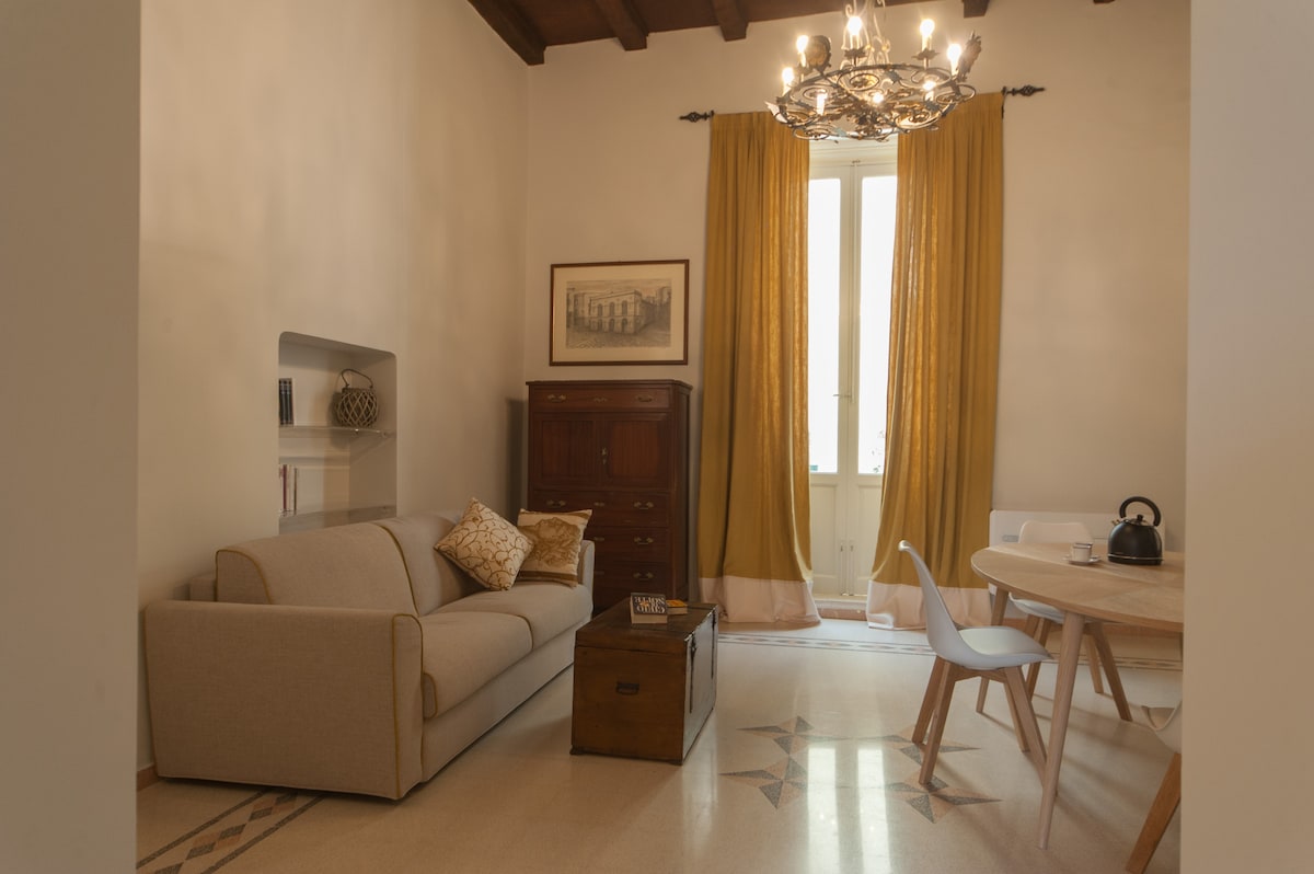Gracias a este espacio estratégicamente ubicado, no tendrás que renunciar a nada. Con vistas al majestuoso castillo de Suabia, Solea es un departamento moderno y espacioso de 70 metros cuadrados dentro del Palazzo Apulia, un antiguo edificio de piedra finamente renovado en Trani. A tiro de piedra del puerto, las playas y la catedral junto al mar. Equipado con una cocina totalmente surtida, aire acondicionado, TV, Wi-Fi, nevera y cafetera, Solea es la comodidad que buscas para descubrir la maravillosa ciudad de Trani.