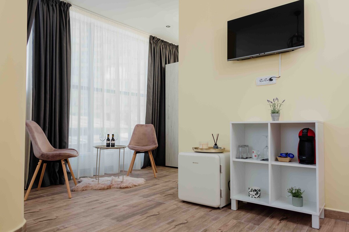 Si eres un turista o simplemente pasas,este es el mejor lugar donde puedes alojarte. La ubicación está en el centro de Deva,tiene una vista impresionante de la plaza de la ciudad y la fortaleza de Deva. Todo está cerca,es un lugar tranquilo y la ubicación fue renovada a principios de 2022. La ubicación tiene todo lo que puedes necesitar, tiene incluso una secadora y también podemos proporcionar comidas del mejor lugar tradicional de la ciudad con un descuento. Nos gustaría que fueras nuestro próximo huésped.