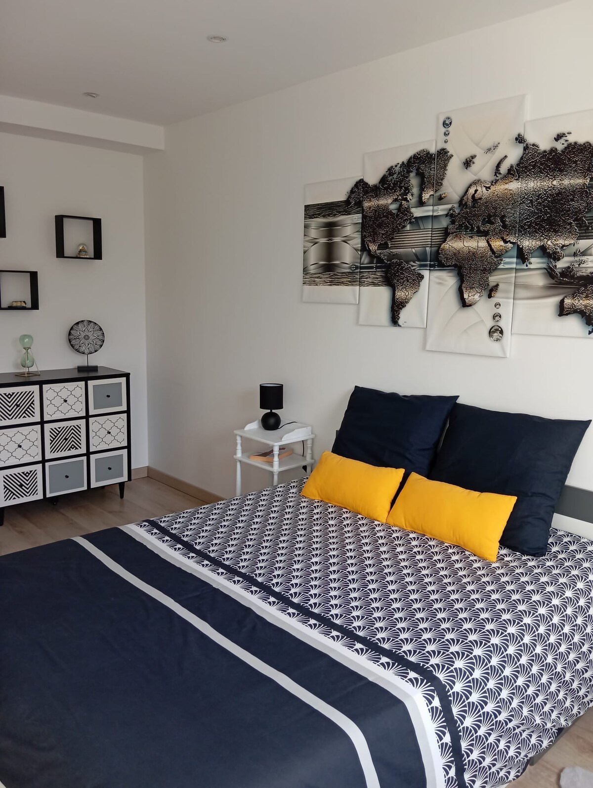 Alójese a 2 minutos del centro de Poissy en un apartamento de 1 dormitorio moderno, amplio y lleno de luz. Ofrece una cómoda habitación con cama doble, una sala de estar con sofá cama, una terraza privada para sus momentos de relajación, así como un estacionamiento subterráneo seguro. A pocos pasos, disfrute de tiendas, restaurantes y transporte (RER A y Línea J hacia París). Ideal para descubrir París mientras se aloja en un entorno tranquilo y acogedor. ¡Reserve ahora!