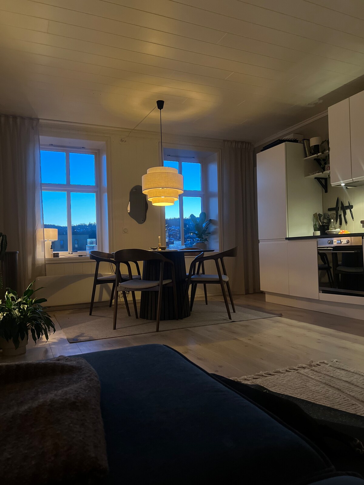 Este es un apartamento acogedor, ubicado en el centro de la ciudad de Trondheim. Tendrás todo el alojamiento para ti: dos dormitorios, una amplia sala de estar, una cocina, un baño y un balcón. El apartamento tiene 68 metros cuadrados y está situado en el primer piso (segundo piso noruego) de una antigua casa del centro con techos altos y alféizares profundos. El apartamento es ideal para 3 adultos o 2 adultos y 2 niños.