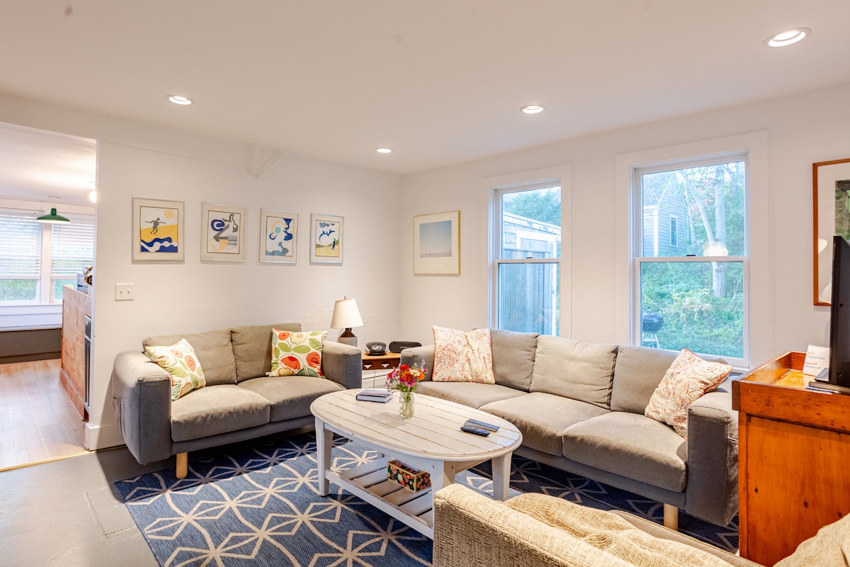 Convenient and cozy 900 sqft 3 bedroom cottage steps from Corn Hill Beach, a beloved beach in Truro with the most stunning bayside sunsets. Equipped with A/C (split unit), fans, smart TV, wi-fi, washer/dryer combo unit, gas grill, picnic table, outdoor shower and 2 parking spots. Linens & towels are included. **NO PETS ALLOWED** This is our family cottage and our son is allergic to dogs. We do not recommend this cottage for any guests with mobility issues as the stairs are quite steep.