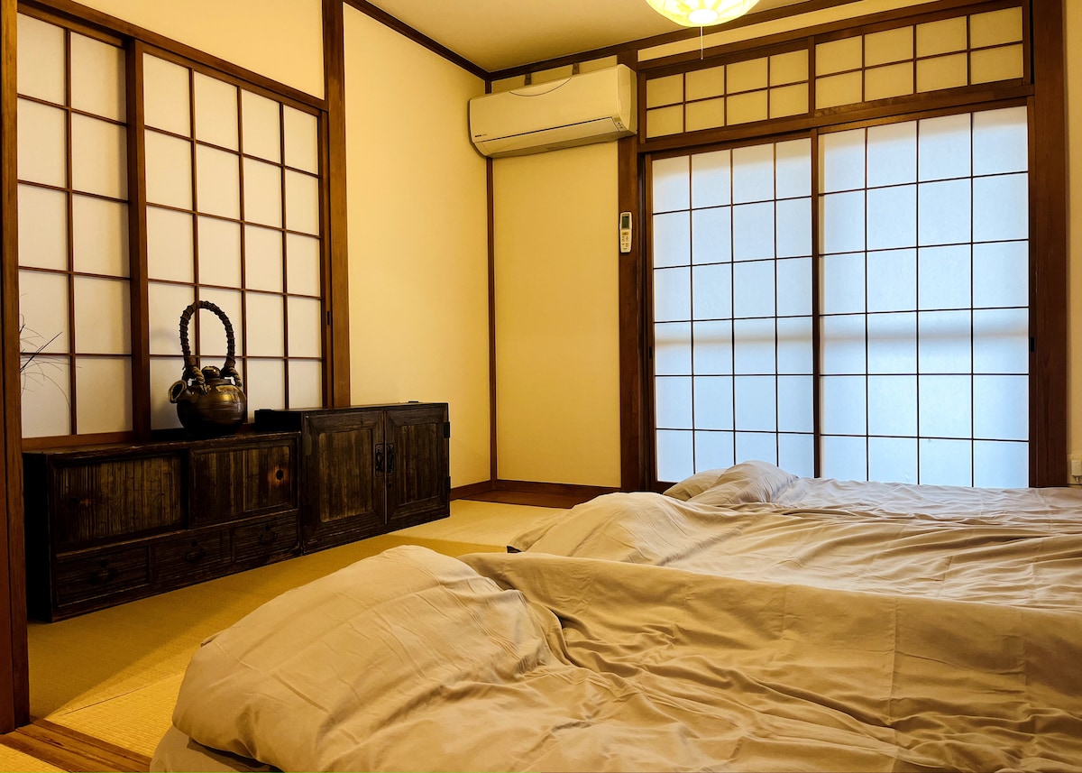 Ofrecemos todo el segundo piso de nuestro edificio de tres pisos, con un apartamento de 60 ! con un amplio diseño de 3LDK y un gran balcón. Las habitaciones incluyen habitaciones de tatami de estilo occidental y tradicionales. Hay wifi de alta velocidad disponible, lo que lo hace adecuado para fines de trabajo o de ocio. Está convenientemente ubicado para visitar el Estadio Nissan, el Estadio Yokohama y los eventos en el K-Arena. El espacio tiene capacidad para entre 1 y 6 personas. Puedes disfrutar de Okonomiyaki y barbacoa en nuestro restaurante,