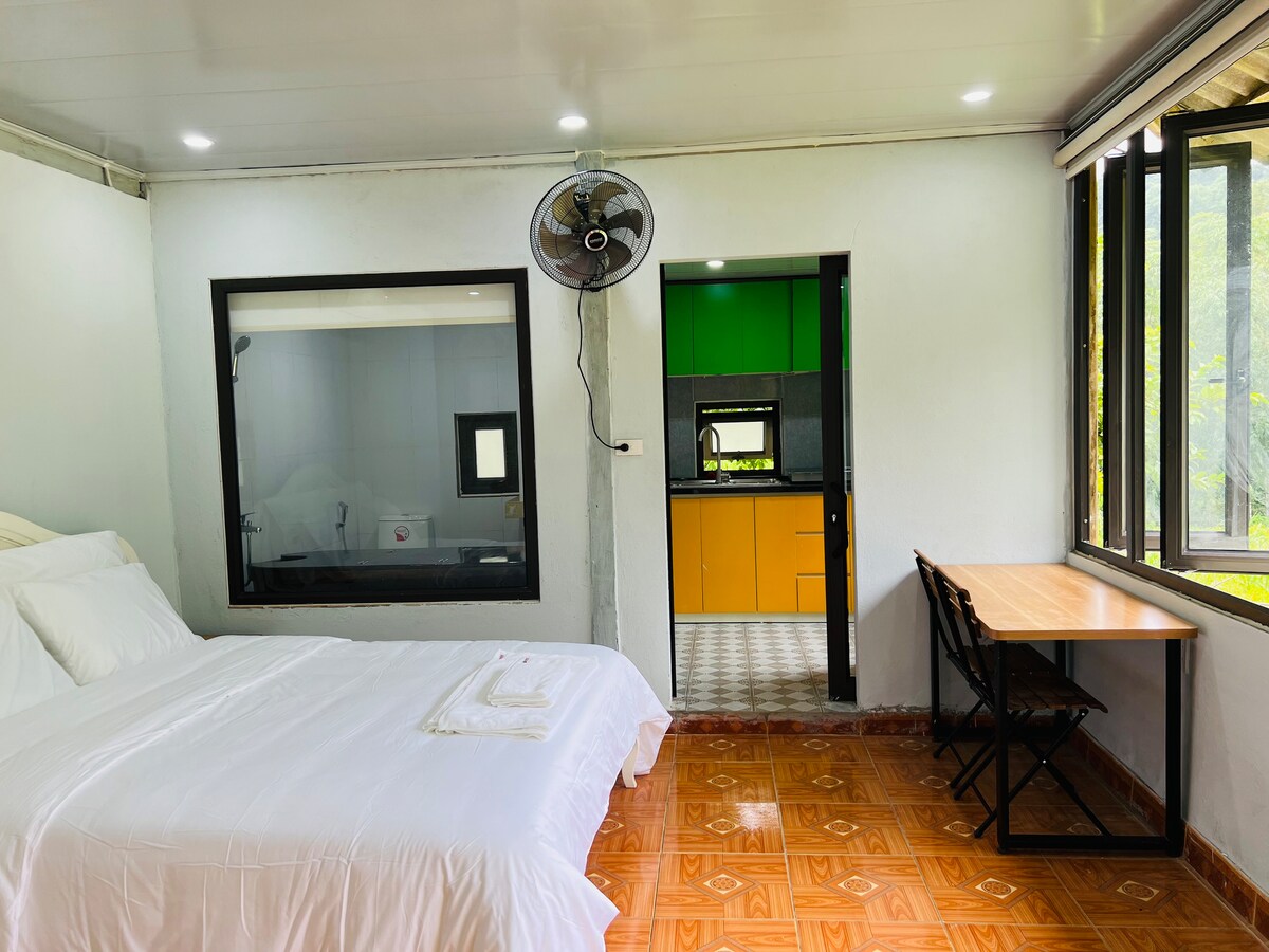 Rodeado de interminables campos de arroz y verdes colinas de montaña se encuentra el tranquilo pueblo de Lac. Nuestro bungalow tailandés de madera (a 5 minutos a pie) fue renovado en 2014 para proporcionar a nuestros huéspedes toda la comodidad necesaria (WiFi, enchufes, ventiladores, lavadora).