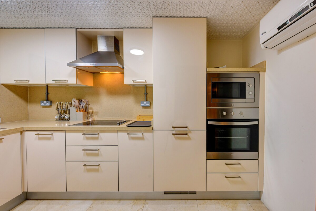 Relájate en esta escapada única y tranquila. Un apartamento de lujo cerca de las principales carreteras y a 10 minutos del centro comercial Seef y del centro de la ciudad. Tres dormitorios para dormir seis. Cocina algo en una cocina de tamaño completo o relájate con un televisor de65pulgadas con canales de streaming. Tendrás tu propio acceso a través del ascensor. Tu anfitrión se hospeda en el mismo edificio y responderá rápidamente a cualquier solicitud.