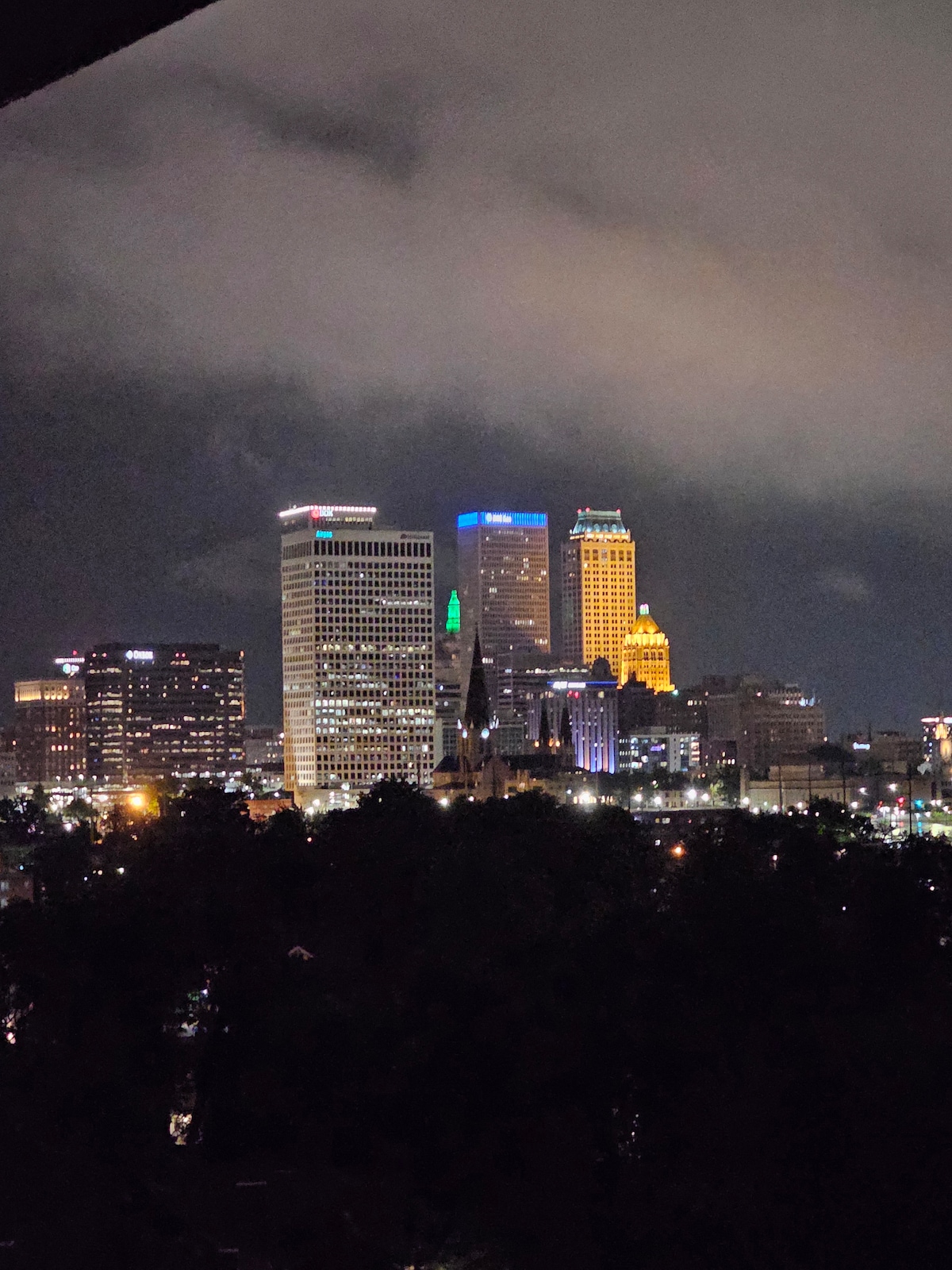 Vistas de ático de lujo, vida nocturna en el centro, parques