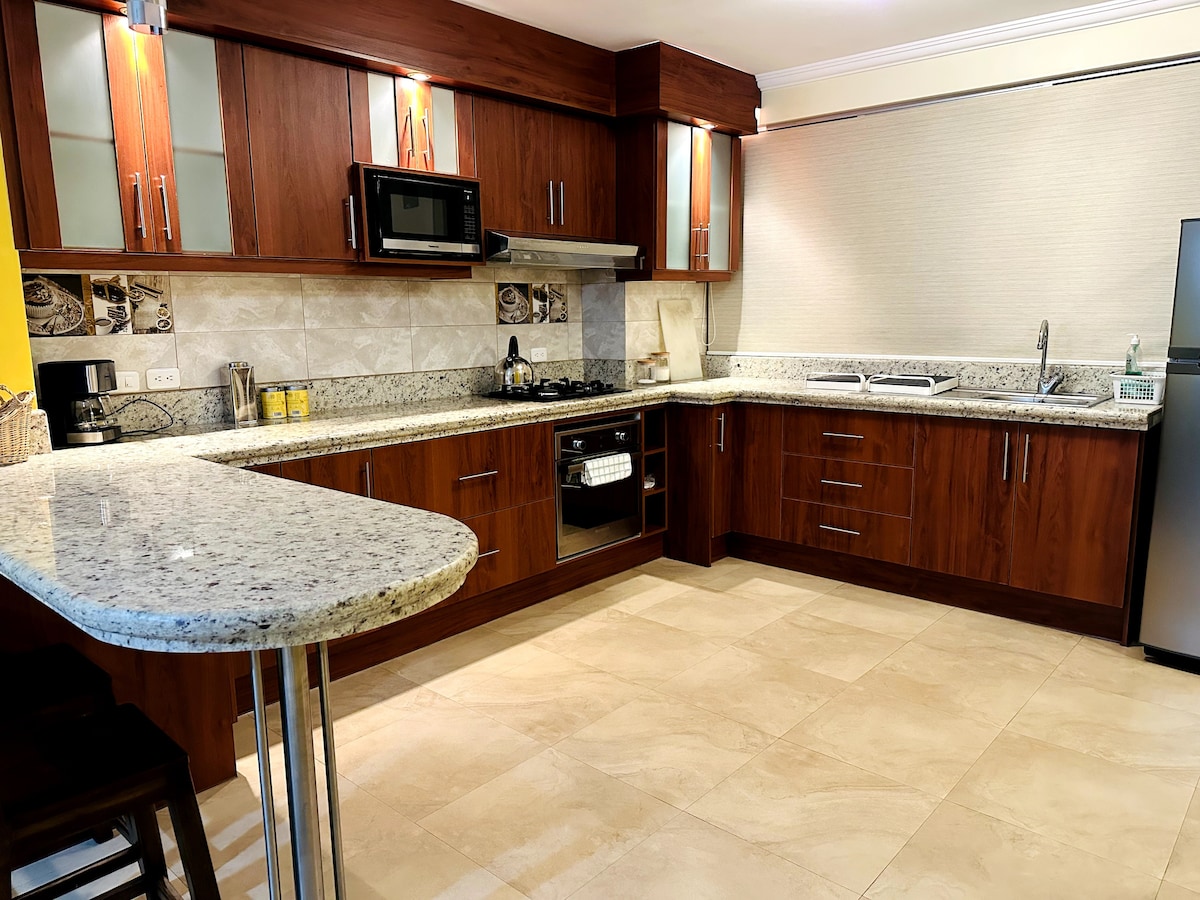 Es un lugar maravilloso donde podrás descansar y sentirte como en casa, elegante, con todo en última tecnología a tu alcance, cama king size, baño privado, persianas electrónicas black out, Alexa, asensor. Además de ser un espacio muy tranquilo, con todas las seguridades, en un sector exclusivo y en la mejor ubicación, en medio de los mejores restaurantes y atracciones, todo podrás realizar a pie. Perfecta para parejas o viajeros de negocios. ¡Te esperamos!” Haz de esta suite tu hogar.