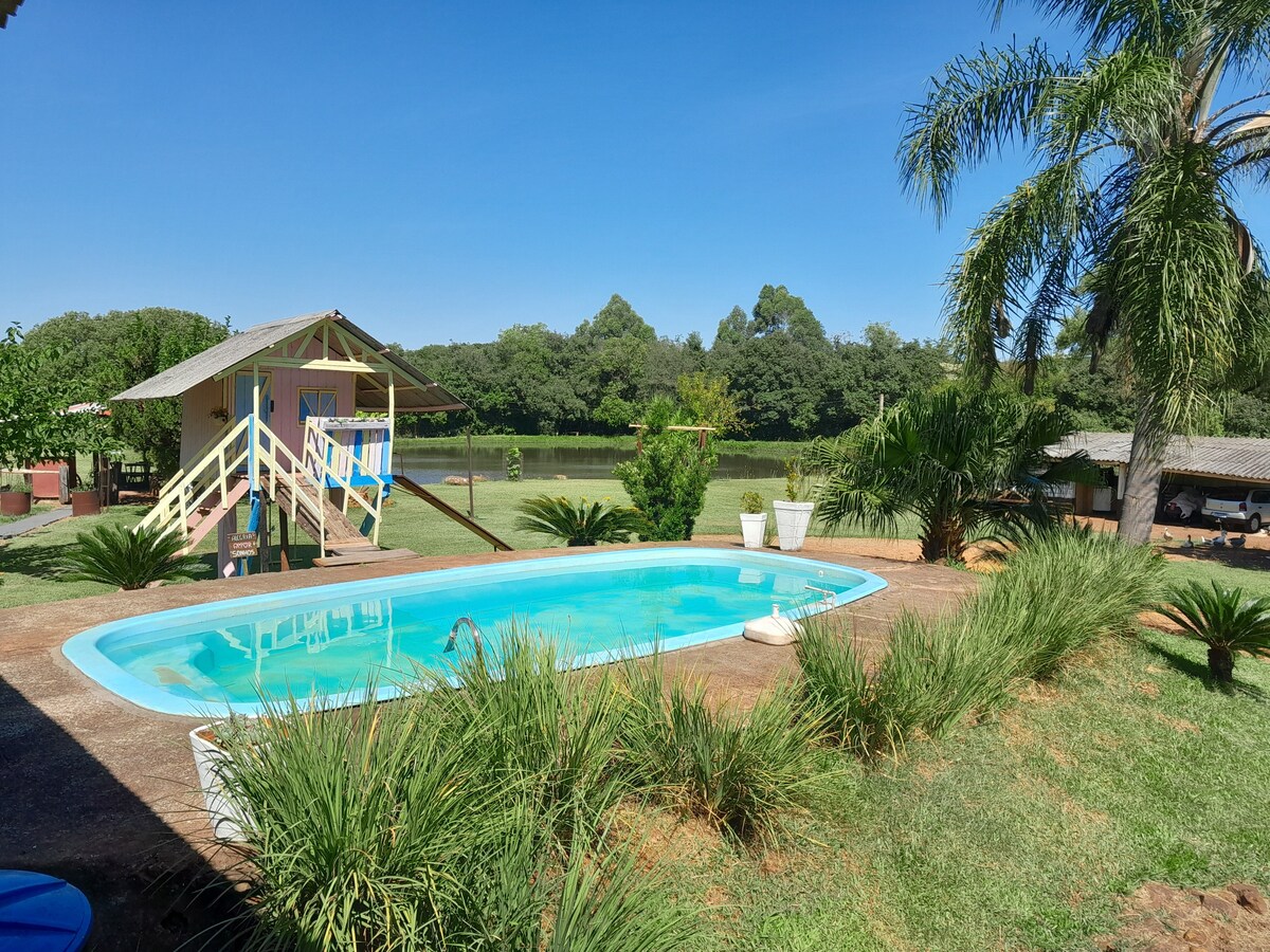 Relájese en este lugar tranquilo, en medio de la naturaleza. Escuche el canto de los pájaros y el sonido de las aguas del río Lajeado Minas. La cabaña está rodeada de vegetación nativa, con acceso al río y tiene senderos. La cocina de la cabaña está completa con utensilios, horno eléctrico, microondas y minibar. La sala de estar tiene un sofá cama, bañera de hidromasaje y TV con acceso a Netflix. Hay una terraza exterior con vistas a la vegetación y al amanecer. En el exterior hay una chimenea de leña y un quiosco con parrilla.