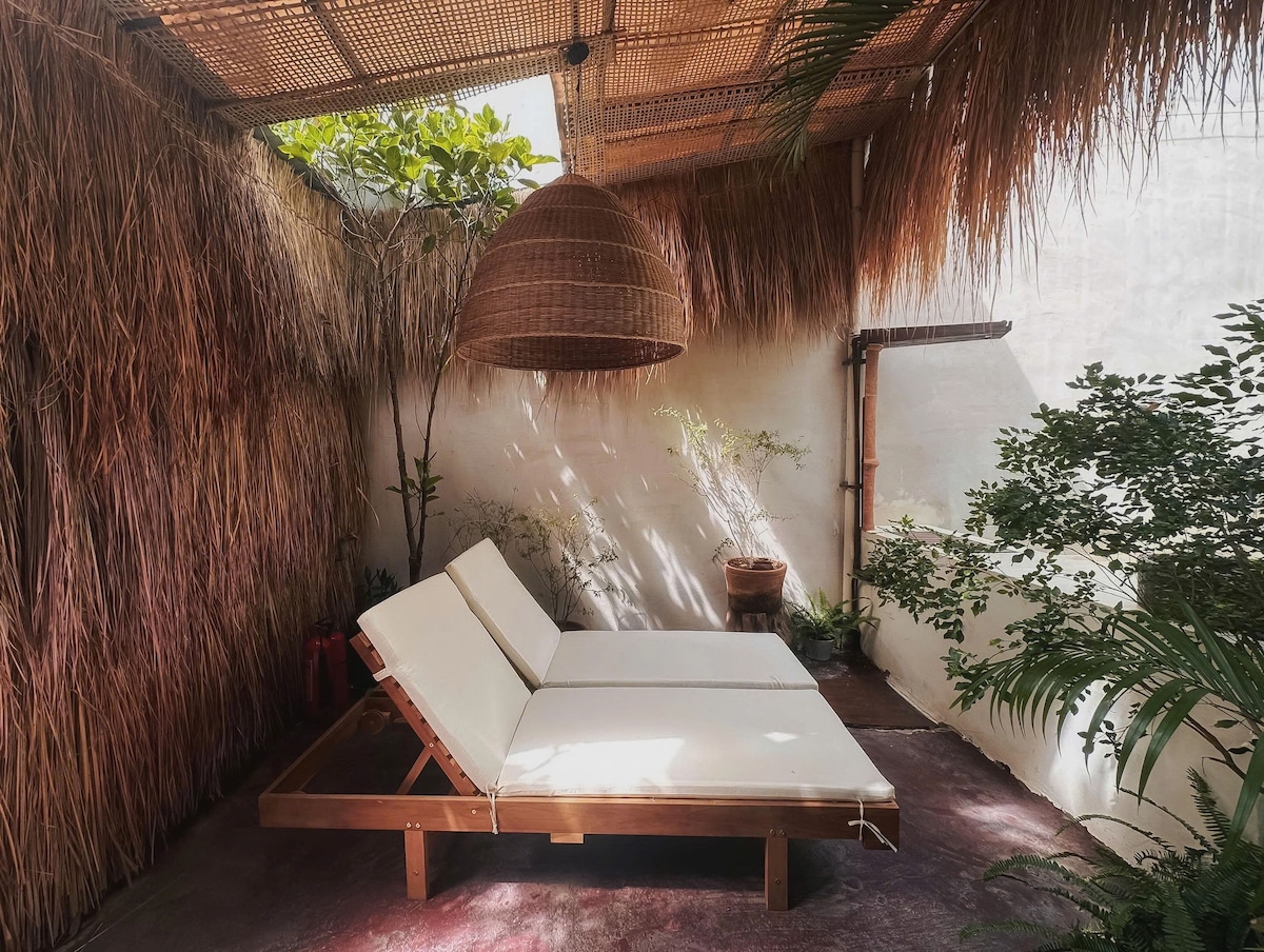 Ngôi nhà nhỏ xinh nằm ẩn mình trong một con hẻm yên tĩnh ngay trung tâm thành phố, nơi bạn có thể dễ dàng đi bộ ngắm biển và hoà nhập với những hoạt động địa phương nơi đây. - Nhà sân vườn riêng, có hồ bơi ngoài trời, bếp, bàn ăn, view cây xanh, bồn tắm. - Phù hợp: 2 người lớn + 2 trẻ em dưới 6 tuổi