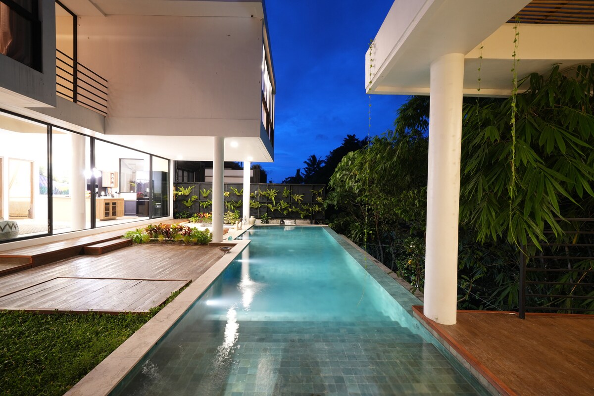 Nueva villa privada de lujo: - Cuatro dormitorios con hermosas vistas a la selva. - Servicio de conserge proporcionado - Piscina enorme - Internet de 300 Mbps, perfecto para trabajar. - Amplia zona ideal para barbacoas. - Acceso al río y a la playa. - Hermoso diseño con un concepto y diseño minimalista moderno. - Todos los servicios cercanos (piscina más grande, el mejor gimnasio, los mejores restaurantes, mercado moderno, tiendas). - Disfruta de las mejores actividades en Ubud. - PS5, Netflix bajo petición. - Limpieza diaria, incluido el cambio de toallas y ropa de cama.