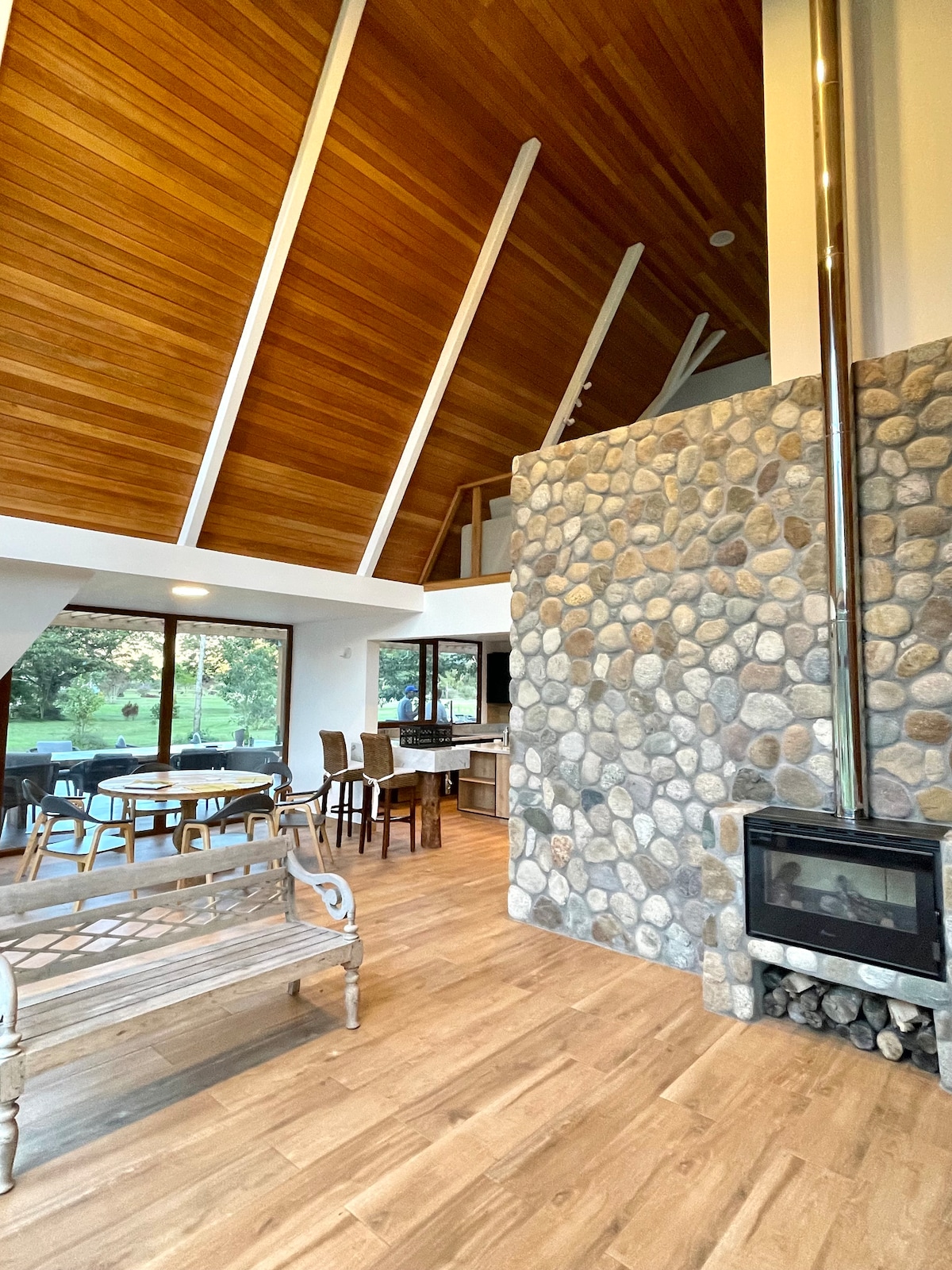 Casa familiar espaciosa y muy luminosa ubicada en la Villa Permacultural Oasis Blue. La casa cuenta con todas las comodidades para la estadía de tu familia en el medio de un hermoso bosque. Disfruta de la experiencia única de un jacuzzi al aire libre o de calentarte cerca a la hermosa chimenea. El espacio de Oasis Blue cuenta con 200m de borde de un río de aguas cristalinas así como espacios para poder disfrutar de la naturaleza y realizar fogatas.