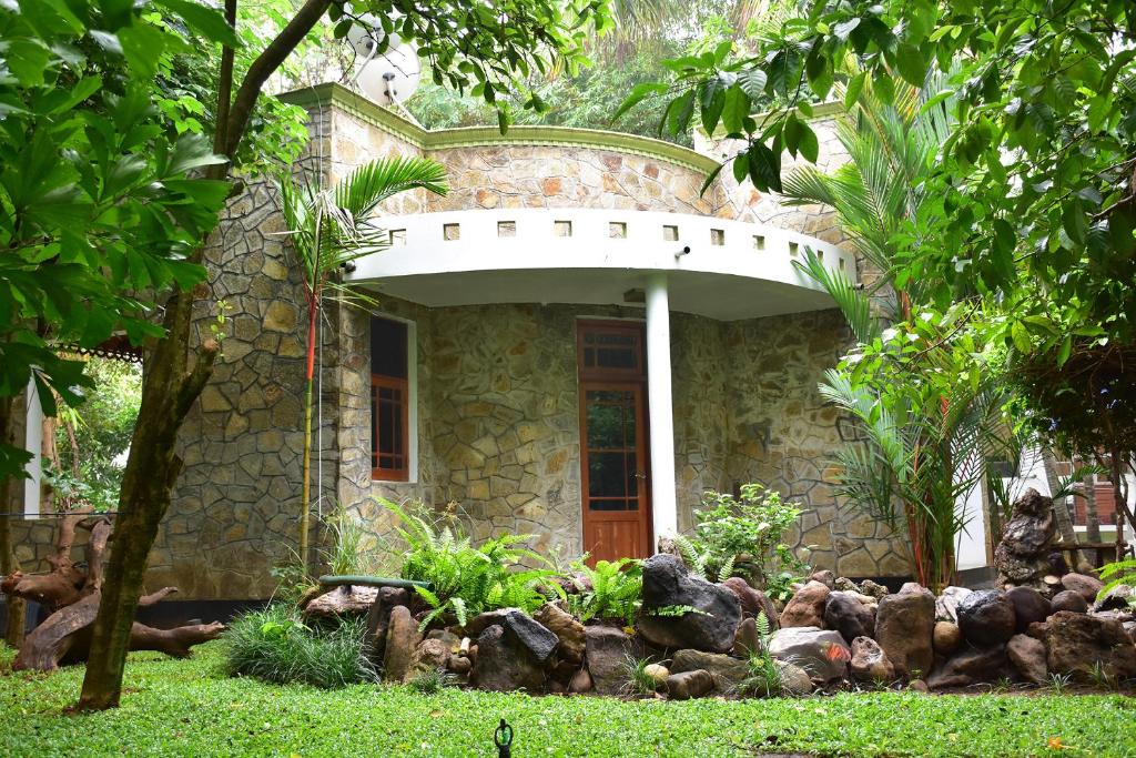 Rodeado de un entorno verdoso y la mejor parte es el hermoso río que se encuentra frente a las habitaciones. Puedes disfrutar de una variedad de sonidos de aves en la propiedad, la experiencia como si estuvieras en el paraíso. La propiedad es una y solo en Sri Lanka, que es construida por el propio propietario utilizando cientos de miles de piedras especiales (puedes ver videos e imágenes ). Auténtico tour de safari y experiencia de yoga. Tenemos una sección separada frente al río y puedes disfrutar y meditar y hacer las cosas relacionadas con el yoga.