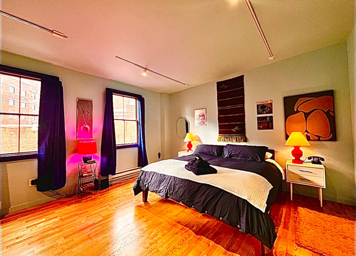 Vuelve a capturar el encanto del pasado mientras disfrutas del lujo moderno en esta casa construida originalmente en la década de 1890. La residencia cuenta con techos detallados originales, una estética de diseño de mediados de siglo, ladrillo original renovado y brillantes toques de color. Unidad entera de 900 pies cuadrados en el primer piso. Incluye 1 dormitorio(Queen), cocina privada/comedor, sala de estar y un baño. La casa adosada está restaurada con hermosos detalles vintage, pero también con todas las comodidades de la vida moderna, como wifi de alta velocidad, termostatos digitales y entrada a la casa a través de una cerradura inteligente. * Tarifa única adicional de $ 25 para configurar un colchón de aire para 2 huéspedes. Todos los huéspedes pueden utilizar todas las instalaciones de nuestra propiedad, incluido nuestro patio trasero. La propiedad está situada en el centro de la ciudad histórica de Kingston. Explora el mercado de agricultores de fin de semana a solo unos pasos del porche delantero, así como de cafés, restaurantes, museos y locales de música locales. La casa de huéspedes Bau es de fácil acceso. Está a 7 minutos a pie de la parada de autobús Kingston Trailways y a 5 minutos en coche desde la salida 19 de la I-87. El estacionamiento en nuestra calle está medido de lunes a viernes de 9:00 a. m. a 5:00 p. m. También hay estacionamiento gratuito en la calle disponible a la vuelta de la esquina.