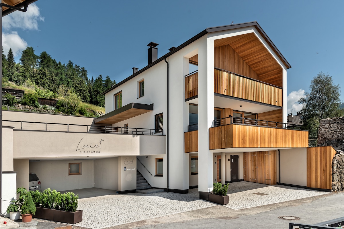 Completamente nuevo y elegantemente amueblado Alpine Chalet Aurora Dolomites se encuentra en el pueblo de montaña de Lajen, en una ubicación tranquila y soleada. Directamente conectado con praderas, campos y senderos para caminar, puedes disfrutar del hermoso paisaje natural del valle de Eisack y el Val Gardena. El chalet alpino Aurora está equipado con su propio solárium al aire libre o una gran terraza con jardín, un comedor, algunas tumbonas y muchos equipos de juegos infantiles.