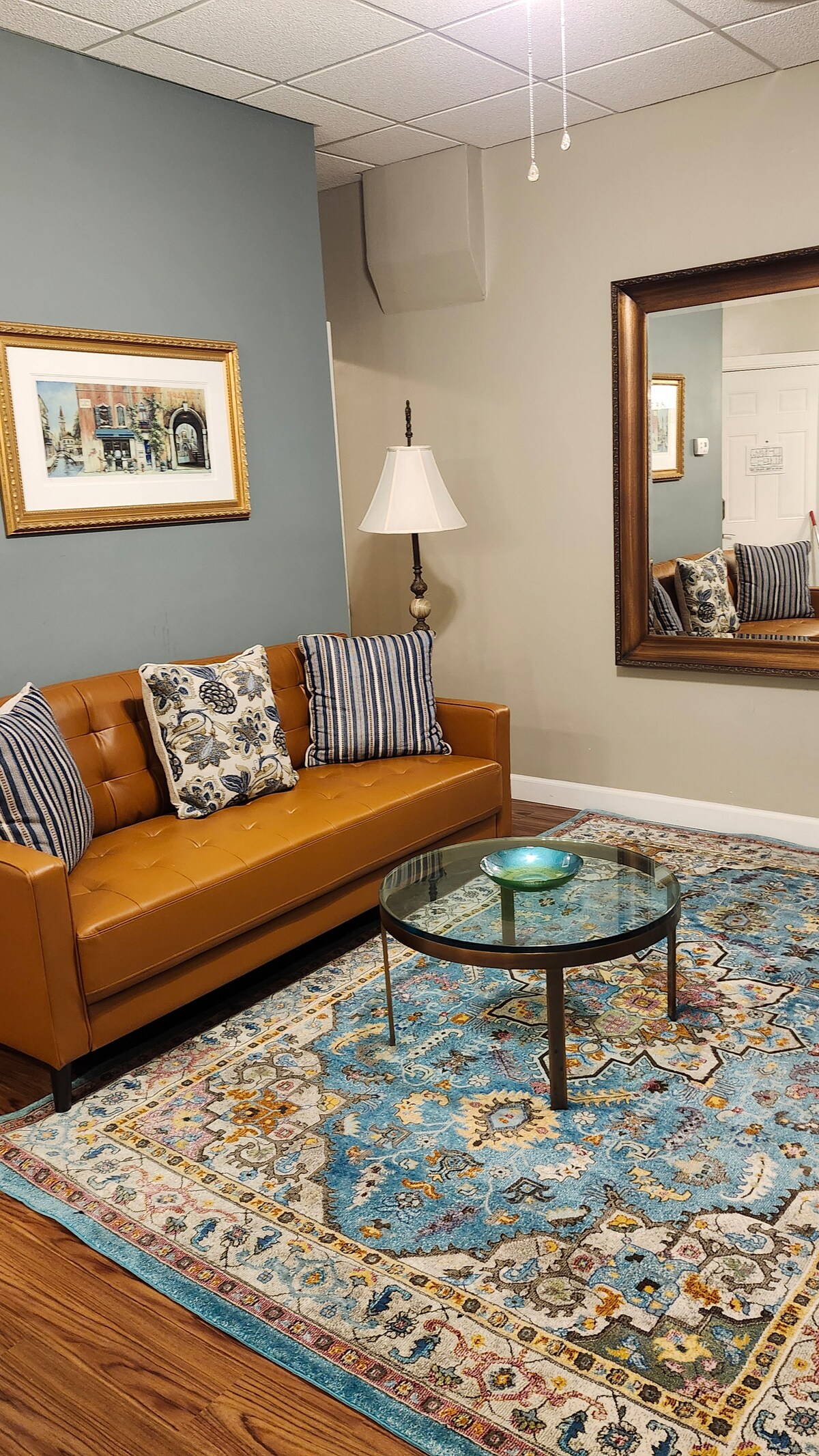Apartamento recién remodelado en el centro de la ciudad. Mobiliario nuevo, rincón de oficina con escritorio, cocina de tamaño completo y electrodomésticos, televisión inteligente, wifi gratuito, amplio espacio abierto con dormitorio privado y baño. Muy limpio. Se puede utilizar la terraza compartida adyacente con mesa y sillas. Este es un apartamento de segundo piso en la parte trasera de Simply Elegant Boutique, por lo que hay 17 escalones para llegar desde el exterior. *Descansa tranquilo, todas las superficies y pomos de las puertas se desinfectan después de cada estancia.