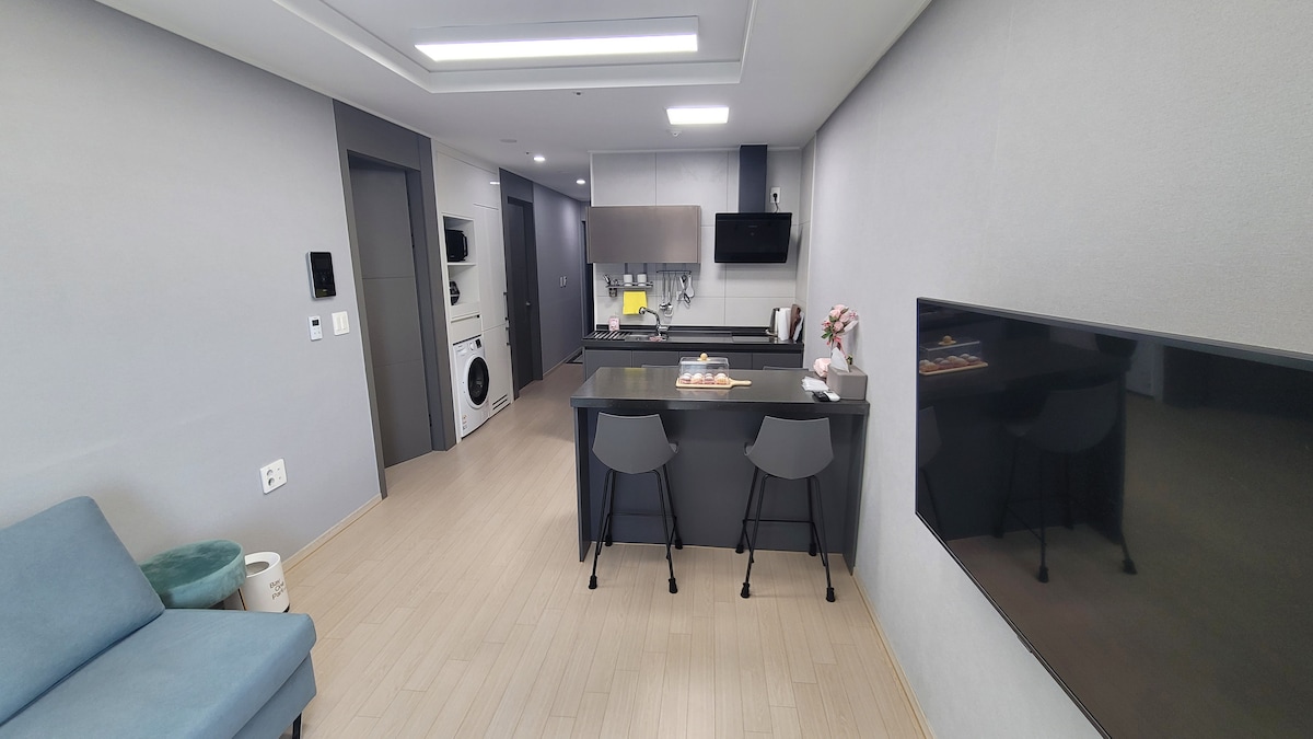 Ubicado en el centro comercial de Yeosu Hak-dong, tiene una buena infraestructura y es un alojamiento limpio y elegante, ya que fue construido recientemente en 2023. El transporte es bueno, por lo que puedes viajar a las atracciones turísticas populares en 20 minutos en coche. Hay instalaciones convenientes como un hospital general, banco, oficina gubernamental, parque de tortugas, mercado de Jinnam, tienda de conveniencia y calle comercial del astillero de Hakdong, para que pueda disfrutar y relajarse. Hay servicio de catering y lavandería, por lo que también es posible realizar estancias cortas y largas. Lavamos la ropa de cama cada vez para mantenerla limpia. Es un alojamiento seguro. Proporcionaremos servicios para que sea un alojamiento cómodo de descanso y curación como mi casa mientras te alojas en el centro de la ciudad.