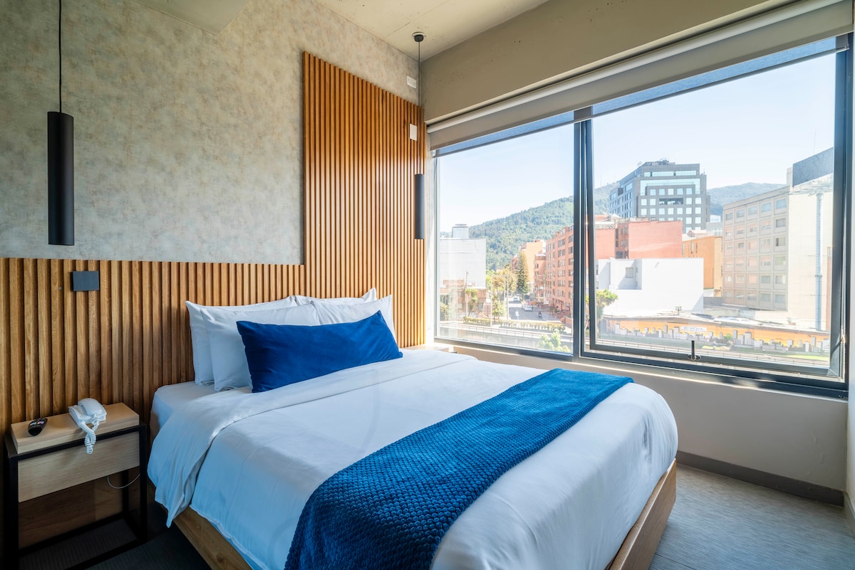 Disfruta de Bogotá desde este acogedor y moderno apartamento, ideal para 2 personas. Totalmente equipado, con WiFi rápido, cocina funcional y todos los servicios que necesitas. Ubicado en una zona estratégica, cerca de restaurantes, transporte y lugares turísticos. ¡Tu mascota también es bienvenida! Algunas zonas tienen un costo adicional establecido directamente por el edificio. •Piscina: $50.000 2 horas •Jacuzzi: $50.000 1 hora •Sauna: $50.000 1 hora
