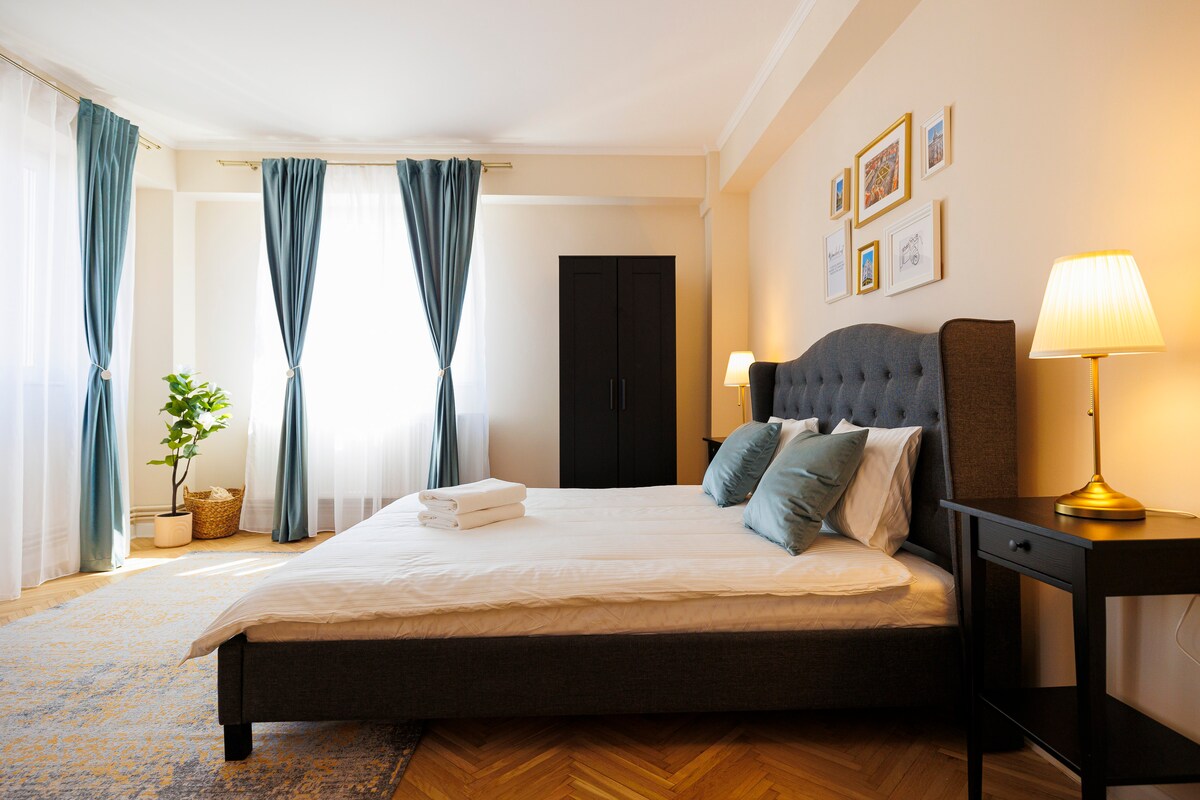 Cozy and chic apartment with view over the city, green bulevard. The apartment is was fully equipped offering maximum comfort. There are installed surveillance exterior camera. With bus E4 you can get from the airport to Bastion, which is near the apartment. It is placed very close to city center - museums, art galleries, parks, restaurants, bars, coffee shops, bakeries. Also, you can walk 5 min to ISHO Business Center or 10 min to Iulius Town - a large shopping center and relaxing gardens.