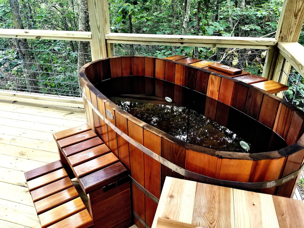 ¡Casa del árbol con DOS bañeras al aire libre junto al arroyo!