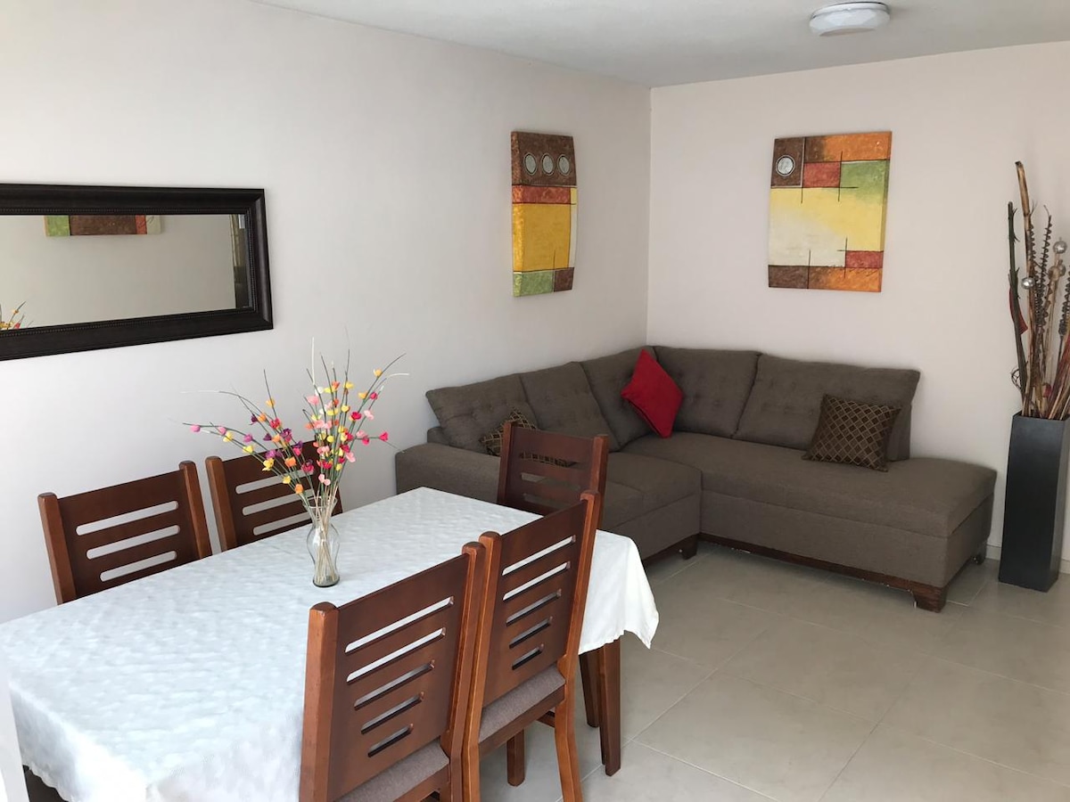 Espacio Familiar. Comfortable y agradable departamento a 10 minutos caminando de la zona turística de Tlaquepaque. Muy cerca del Code Paradero y Plaza Forum Tlaquepaque. Amueblado y decorado pensado en que disfrutes de una muy agradable estancia. Cocina equipada, Smart TV en recámara. Zona tranquila. Tiendas de conveniencia a unos cuantos metros de distancia. También muy cerca se encuentra la fábrica de Tequila El Señor que te ofrece recorridos y comprar su producto a precio de fábrica.