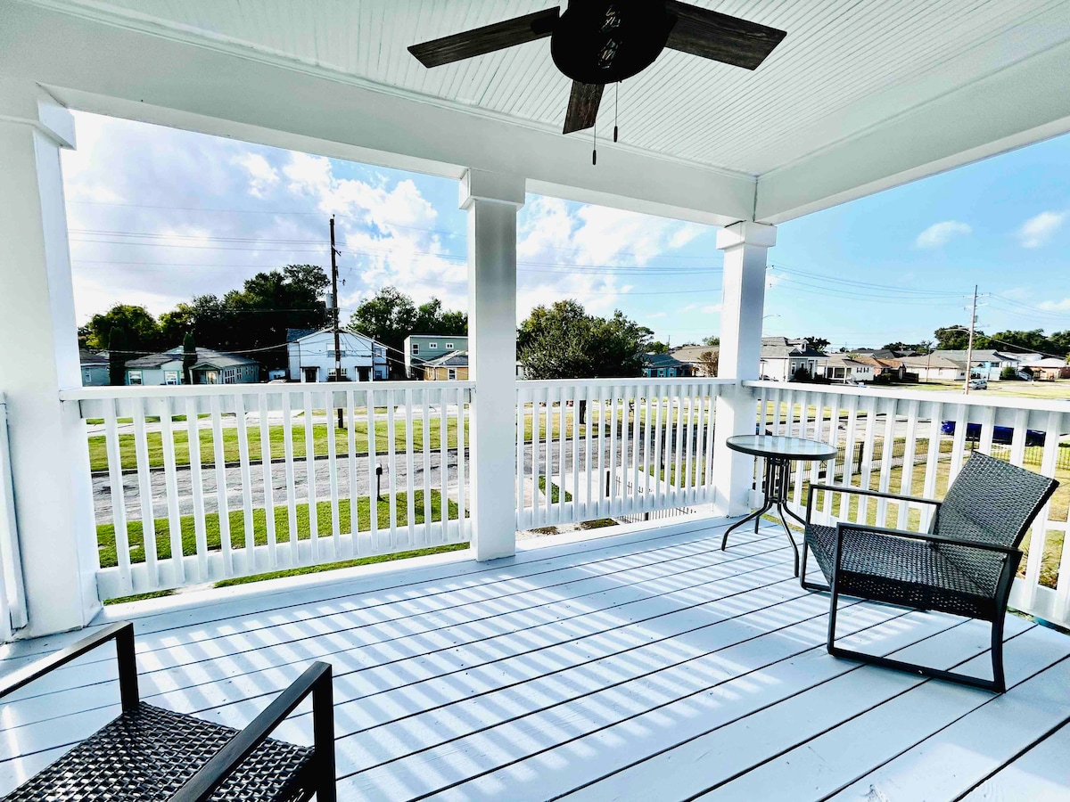 Disfruta de una base de operaciones sobre los árboles en esta renovada, luminosa y acogedora casa moderna de mediados de siglo. La propiedad está rodeada por nuestro delicioso huerto de cítricos/frutas. ¡Lo que esté en temporada es tuyo para recoger! Habitaciones amplias y luminosas. Servicios bien pensados. Relájate en el balcón para ver una puesta de sol en Nueva Orleans. Estás a solo 10 minutos en coche del Barrio Francés y a 8 minutos del parque de la ciudad. Situado en el corazón del luminoso barrio de Gentilly, una ubicación agradable, segura y magnífica, ¡todo tuyo!