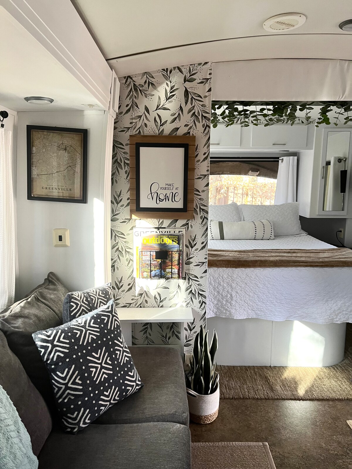¡Hola! Me alegro de que nos hayas encontrado. Ven a disfrutar de tu escapada creativa en la naturaleza en nuestra colorida y renovada Argosy Airstream de 1972. No queríamos que tuvieras que meterte en un pequeño baño de caravana, así que hicimos un nuevo baño de hormigón/azulejos para darte espacio adicional para prepararte para explorar la ciudad con estilo. TV Roku privada en el dormitorio, wifi, cafetera, libros, aire acondicionado/calefacción, enorme porche para relajarse. A 25 minutos del centro de Greenville, cerca de muchas caminatas y senderos, o puedes relajarte en la naturaleza en casa :)