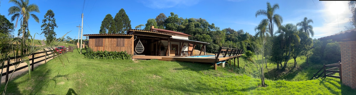 Casa Rústica de Madeira en estilo italiano con barbacoa, estufa de leña, dentro de una granja con animales, piscina natural, agua de pesca, cerca de la Serra do Río do Rastro, a 5 km del Centro Histórico de la Ciudad de Urussanga. Contacto directo con la naturaleza y una hermosa puesta de sol.