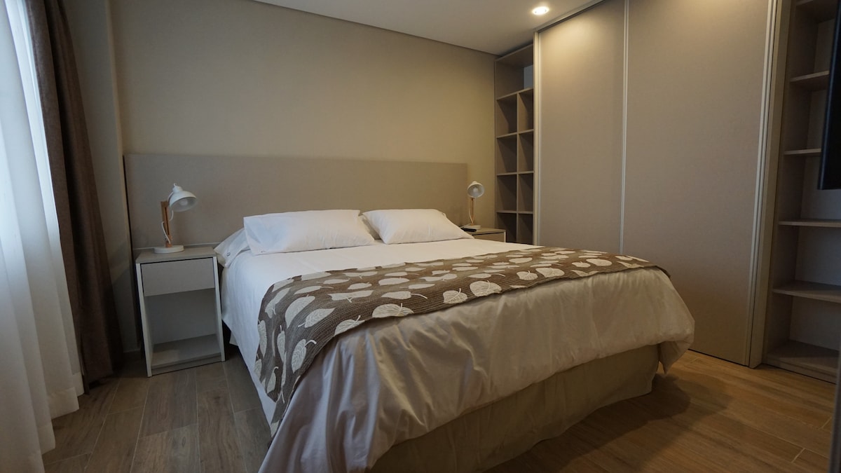 Departamento moderno y con estilo. Excelentes detalles de terminación y decoración. Muy confortable. Cuenta con dos amplios dormitorios, luminosos, con placards y caja de seguridad. Cortinas y Black-outs para un óptimo descanso. Ofrece un cómodo balcón con hermosas vistas. Brindamos todo lo necesario para hacer más confortable su estadía.
