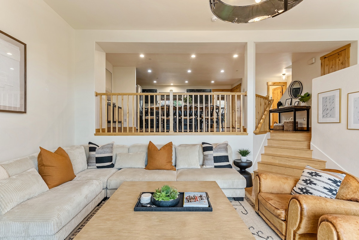 Relax in this beautifully designed two-level mountain condo at the base of Canyons. This family-friendly home has been thoughtfully designed, blending modern chic with a cozy rustic mountain feel, including vaulted ceilings with exposed wood beams and a stone fireplace. Located a short walk to the Cabriolet lift, there is no better starting point for your mountain adventures. Return home for a comfortable evening by the fire and your own private patio for grilling and taking in the views.