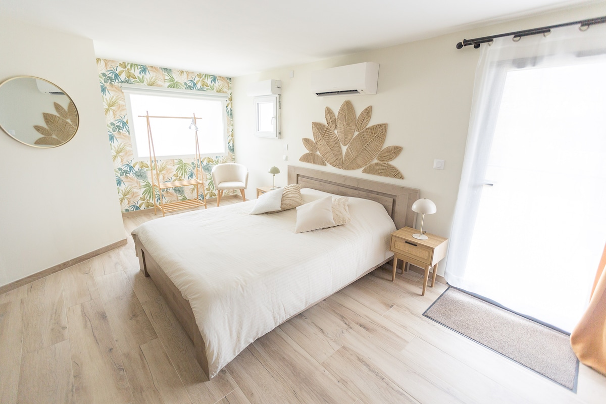 Mas Les Pins (on 2,600m²) has a rich history and is part of a 12th century church complex and old wine cellars. This verdant ★★★★ paradise is only 3 km from Montpellier's dynamic center (10 minutes by tram) and 10 km from the Mediterranean Sea. With 2 charming bedrooms, a well-equipped kitchen, a sunny living room, 2 large terraces to enjoy an aperitif overlooking the extensive garden and pine forest and a 12m salt water pool, you have everything you need for a relaxing stay.