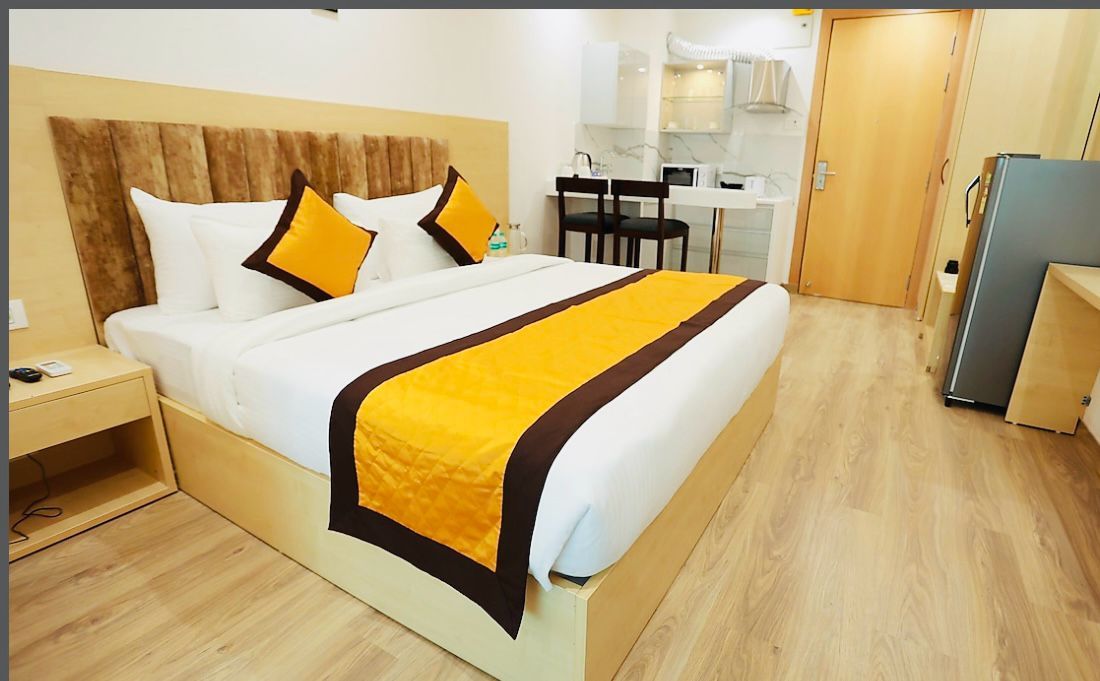 The Casa99 Premium Suite offers a luxurious and spacious retreat, featuring a comfortable bedroom. The suite is equipped with soft sofas for relaxation, an attached modern bathroom, and a fully equipped kitchen with essential appliances like a stovetop, fridge, and cookware. With elegant decor, ample space, natural light, complimentary Wi-Fi, and air conditioning, the Premium Suite ensures a refined and comfortable stay.