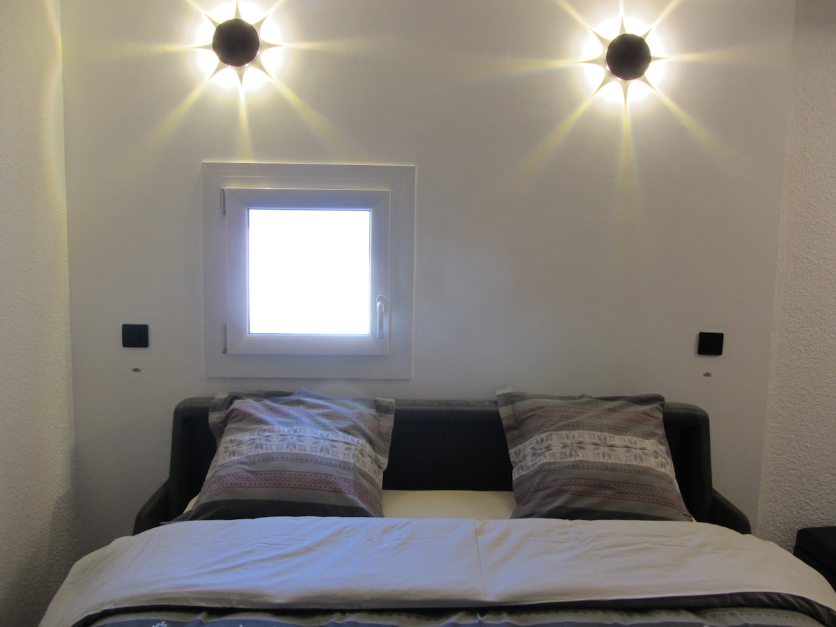 ¡APARTAMENTO NUEVO EN VAL THORENS! Centro de la estación, esquí a pie, armario de esquí, salida de esquí, regreso de esquí Encantador pequeño estudio de 18 m2 muy bien equipado. -Cocina: lavavajillas, horno, microondas, hervidor, nevera grande, campana extractora, placa de inducción. -Sala de estar: sofá cama con somier doble (160 cm), wifi, smartTV, IP TV Residencia La Roche Blanche a 50 metros de Place Caron. Traiga sábanas y toallas de baño.