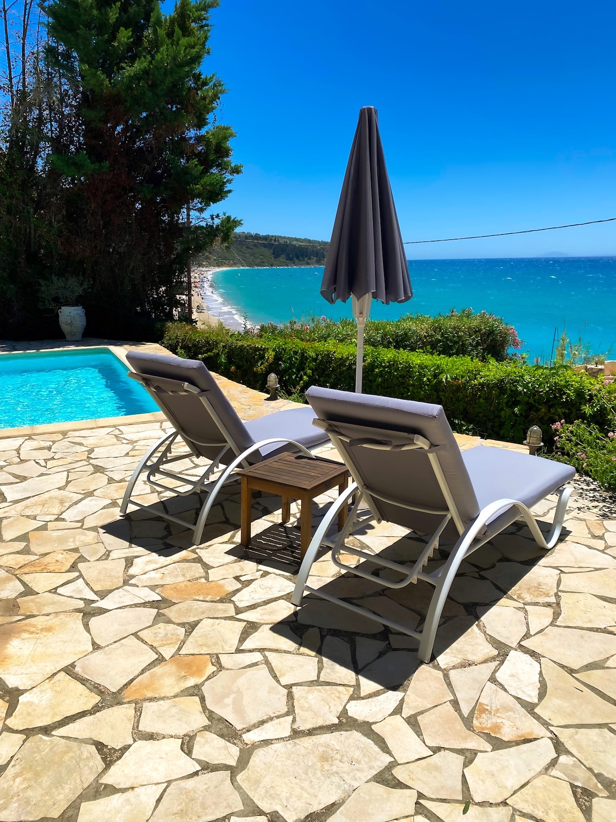 Una casa de nueva construcción abre sus puertas este año, por primera vez para dar la bienvenida incluso a los huéspedes más exigentes. La privacidad que ofrece la villa junto con la arquitectura que combina lo moderno con la decoración minimalista, en combinación con los espacios cómodos y la impresionante fachada con vistas al azul infinito del mar Jónico, lo convierten en un lugar acogedor y encantador. ¡Disfruta de tu estancia en este espacio relajante y elegante!