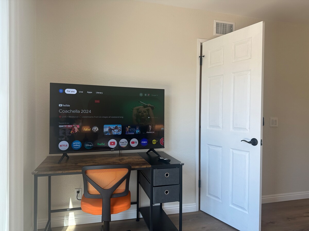Esta es una encantadora casa de huéspedes totalmente renovada construida en la parte trasera de nuestra casa. Estamos situados en un barrio suburbano tranquilo. La habitación tiene una cama individual, baño privado, entrada propia, plaza de aparcamiento designada, horno microondas, nevera pequeña, cafetera, placa calefactora de 2 fuegos, plancha/tabla de planchar, calefacción y aire acondicionado. También hay un patio donde puedes sentarte a disfrutar del fresco clima de California. Ten en cuenta que solicitamos a todos los huéspedes que presenten un documento de identificación oficial antes de la llegada.