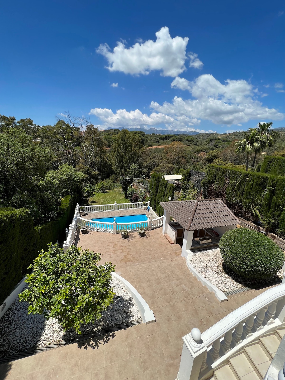 Casueña está en pleno campo, a las afueras de la ciudad de MÁLAGA, rodeado de arboles y pájaros. El Aeropuerto, el centro de Málaga y las playas están solamente a 20 kilómetros de distancia. CASUEÑA es una Bonita villa con piscina privada con cloración salina y climatizada todo el año, barbacoa de leña, grandes arboles, una cocina de seis fuegos y horno de 90 cm. Tiene un fantástico porche de 50 m2 que centrará la actividad de la casa, junto a él está la barbacoa y la piscina climatizada.