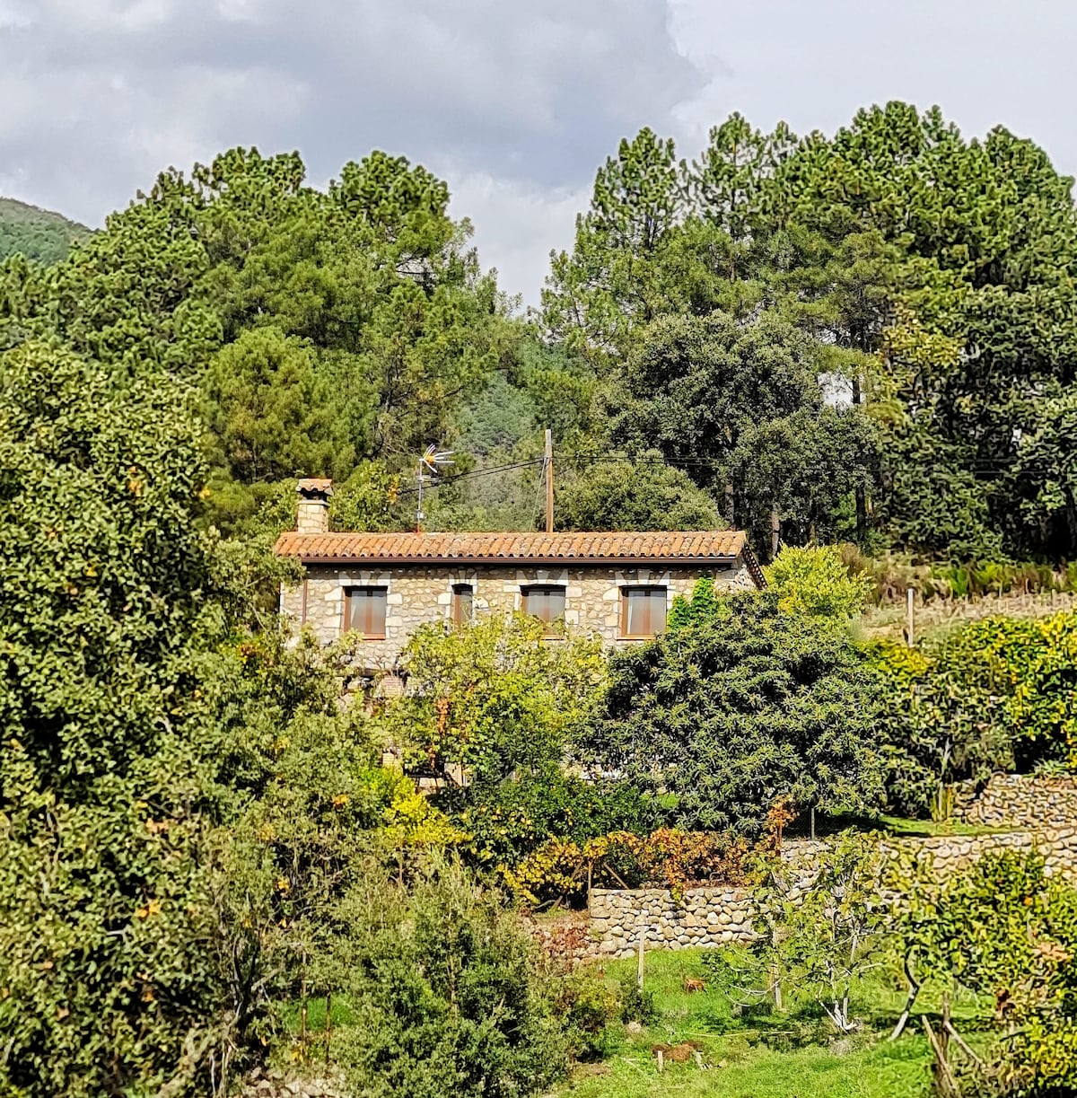 Casa de piedra y madera en pleno monte, 3 habitaciones con cama de 150cm, sofá cama, caben hasta 7 personas, cocina equipada, 1 baño, televisión, wifi, aire acondicionado, estufa de leña.... La piscina es privada para uso de los huéspedes y está en funcionamiento desde finales de mayo hasta otoño, cuando empiecen las lluvias. Jardín privado exterior con barbacoa Es un antiguo sequero de tabaco y pimentón restaurado en un espacio cómodo,acogedor,rústico y con un toque moderno
