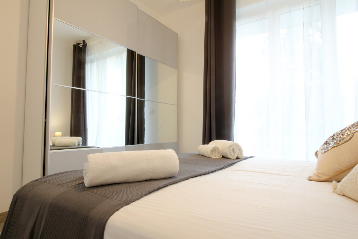 Intero appartamento completamente rinnovato nel luglio 2019, si compone di due luminosissime camere da letto matrimoniali, ampia sala con angolo cottura completo di tutti gli elettrodomestici. Aria condizionata presente in tutte le stanze, WiFi, smart TV 55", posto auto. Entire apartment completely refurnished in July 2019, it consist in two bright bedrooms, large living room with kitchen complete with all appliances. Air conditioning in all rooms, WiFi, Smart TV 55", parking space.