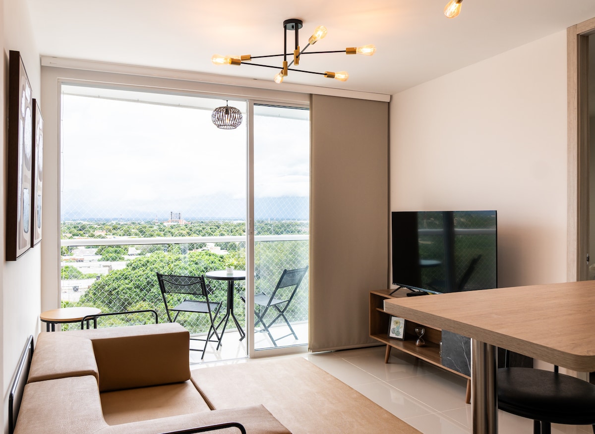 En DOMUS encontrarás todo lo que necesitas para sentirte como en casa. Disfruta de nuestro exclusivo apartamento ubicado en el norte de la ciudad, cerca de centros comerciales, restaurantes, eventos culturales y el paradisíaco río Guatapurí. Ubicado en un quinto piso, gozarás de una vista de 360° de la ciudad, zona de hamacas y BBQ. Todas nuestras habitaciones cuentan con aires acondicionados nuevos. Disfruta de un lugar tranquilo, seguro y agradable. ¡Tu comodidad es nuestra prioridad!