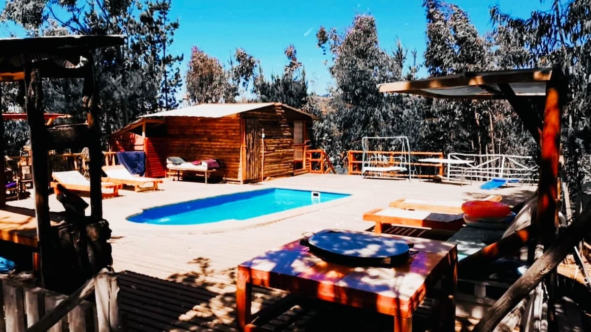 Cabañas Bosquemar con tinaja y naturaleza.