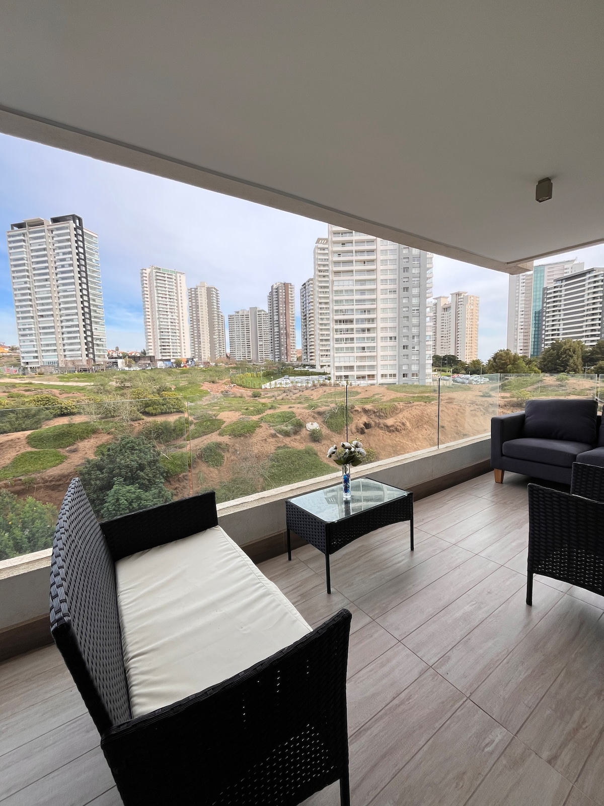 Departamento nuevo ubicado en exclusivo sector de Concón, central, a minutos de playas, dunas, servicios y restaurantes. Apto para niños y bebes (con altos niveles de seguridad), estacionamiento incluido. Cuenta con piscina exterior, piscina interior climatizada y gimnasio. Te invita a descansar, desconectarte y pasar unos días relajados con vista al parque, dunas y mar. Cuenta con mallas de seguridad y terraza cerrada con vidrio plegable para mayor seguridad para los niños.