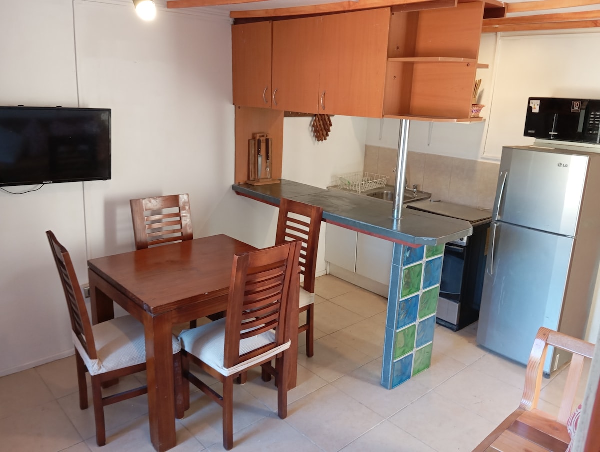 Pequeña y acogedora casita muy iluminada con lo necesario para una cómoda estadía para 4 huéspedes (consultar variación de precios por cantidad de personas y camas extra). A 5 minutos en auto del centro de la ciudad, a una cuadra del camino a la costa, supermercado y comercios a tres cuadras.